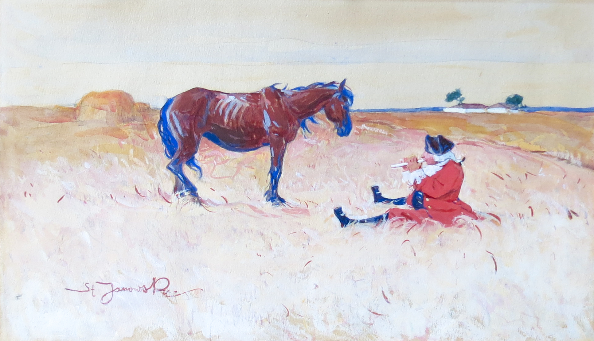 gwasz, akwarela, papier, 20,5 x 34 cm,