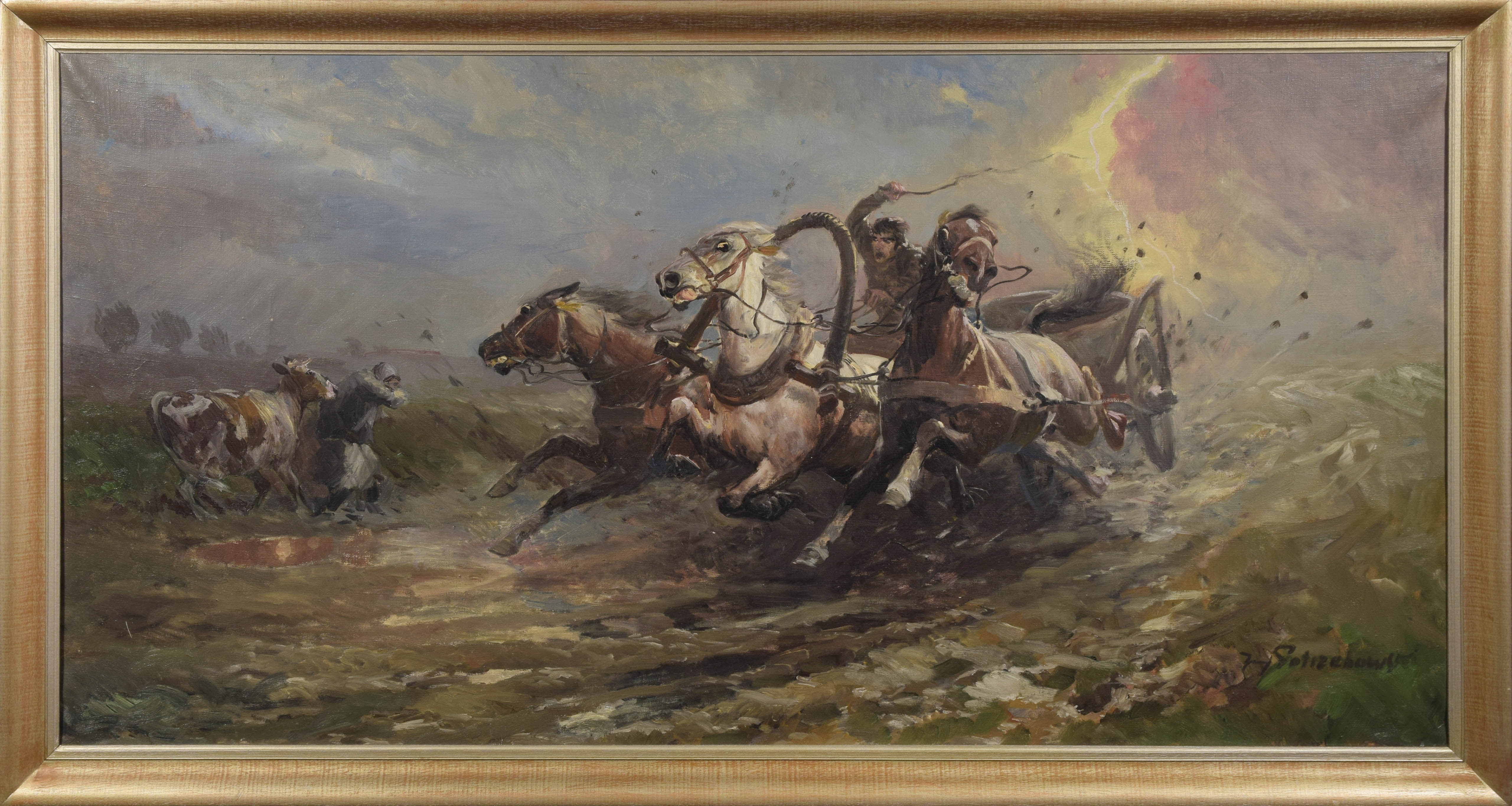 olej, płótno; 68 x 134 cm; sygn. p. d.: J. Potrzebowski; na odwrocie papierowa nalepka ze stemplem: PREZYDIUM RADY NARODOWEJ / w m. KRAKOWIE / WYDZIAŁ KULTURY / MIEJSKI KONSERWATOR ZABYTKÓW z numerem dopisanym odręcznie.