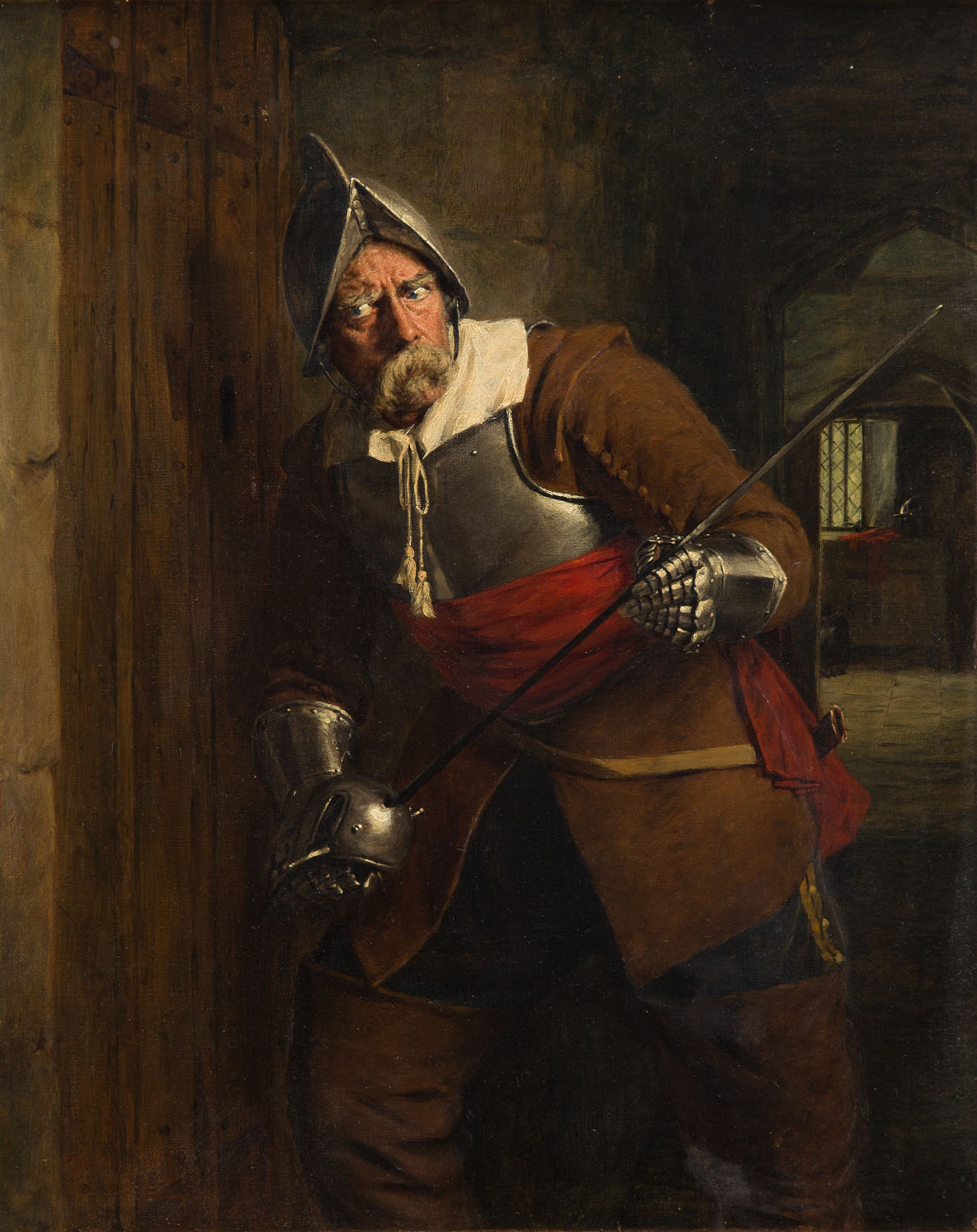 olej/płótno, 63 x 50 cm na krośnie malarskim papierowa nalepka z opisem pracy: 'no 2 On the Alert | J. Watson Nicol' Prace Watsona Nicola wystawiane są m.in. w Queen's College w Oxfordzie oraz w Leighton House Museum w Londynie