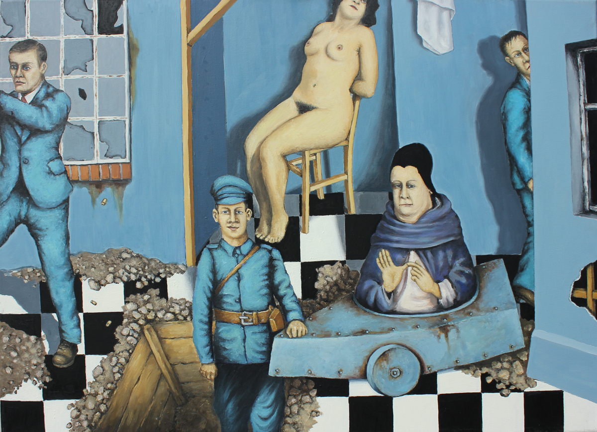olej/płótno, 73 x 100 cm,sygnowany, datowany, opisany na odwrociu: ‘ ROBERT GEBETHNER. | 2015. | tyt. - „NA STRAŻY PORZĄDKU.” | OLEJ. - 73 X 100 ‘