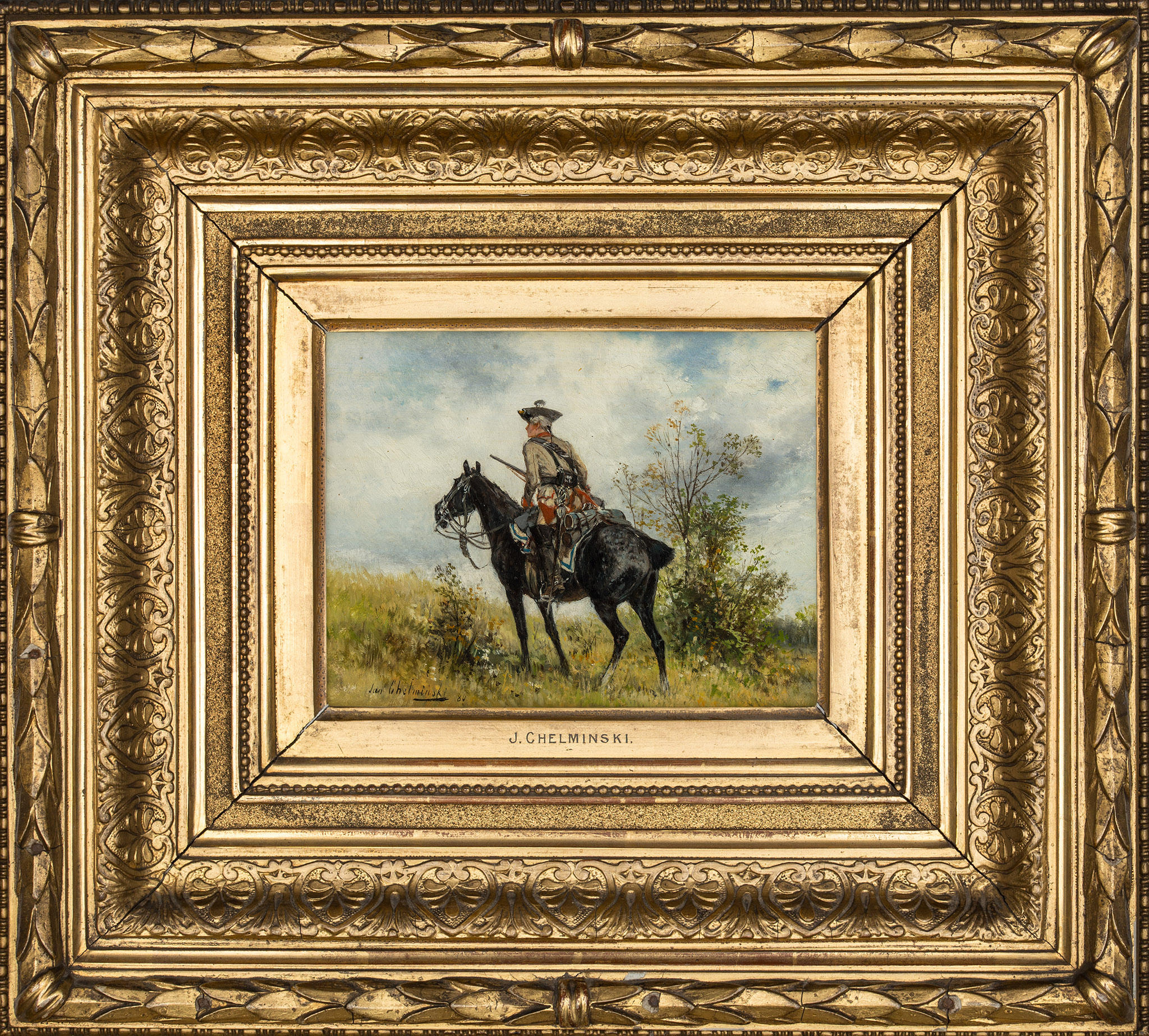 olej na desce mahoniowej, 1880 rok, 14 x 17,5 cm,sygnowany i datowany w lewym, dolnym rogu: "Jan Chełmiński 80".