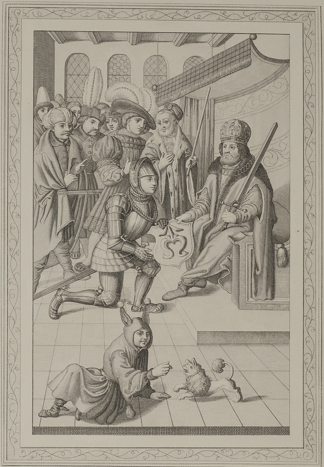 Akwaforta na cienkim kartonie, niesygnowana. Wymiar arkusza 49 x 34 cm. Stan zachowania bardzo dobry. Praca jest nadbitką do wydanego w roku 1852 dzieła "Liber geneseos illustris familiae Schodlovicie MDXXXI"., Szerokość 220mm