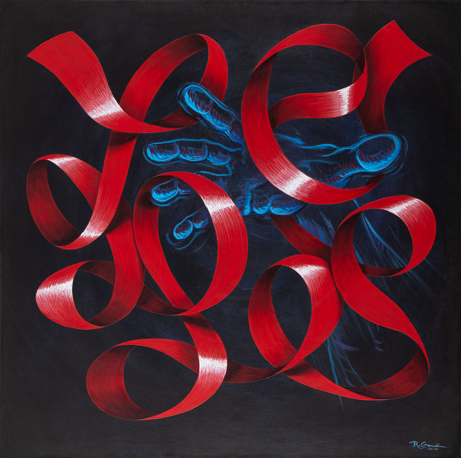 akryl/płótno, 90 x 90 cmsygnowany i datowany p.d.: 'R. Gaudin | 2017na odwrociu opisany: 'Raphaël Gaudin | Avril 2017 | "Espoir"'