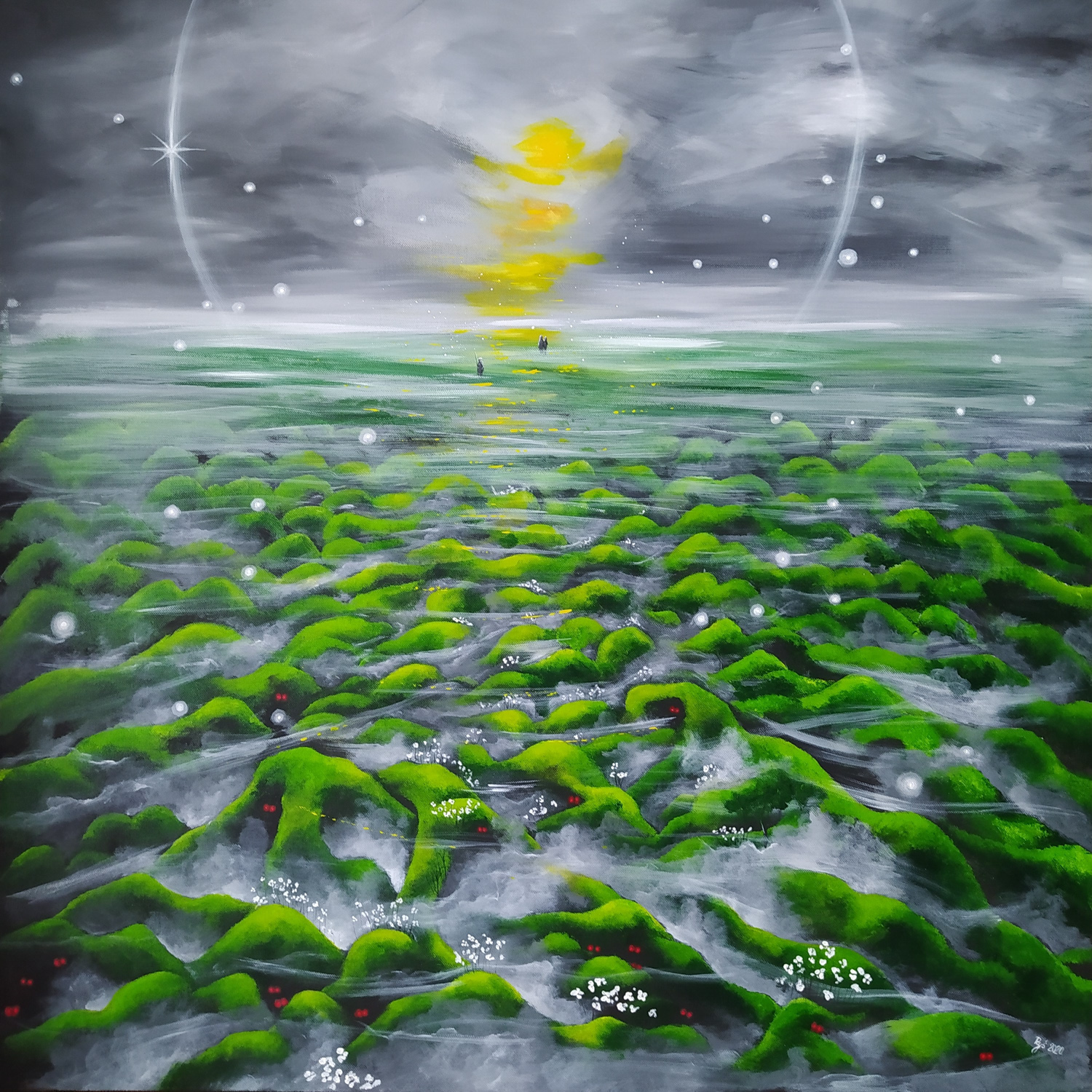 akryl, płótno, 100 x 100 cm, sygn. p.d.: Ryś 2020