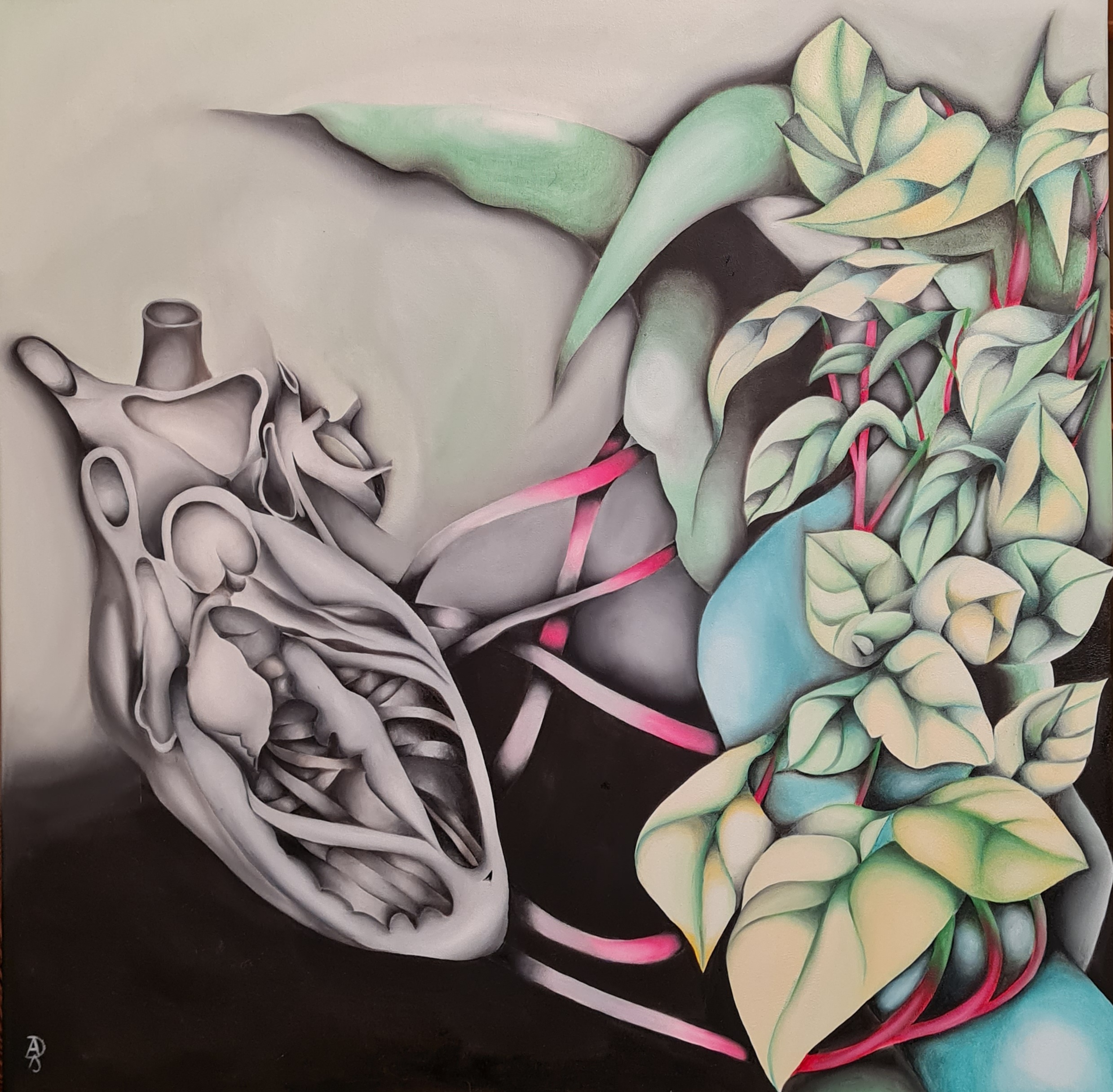 Obraz prezentowany na wystawie "Ogrody jaźni", Dom Narodowy, Rynek 12 Galeria "Ceglana" Cieszyn, 2021.