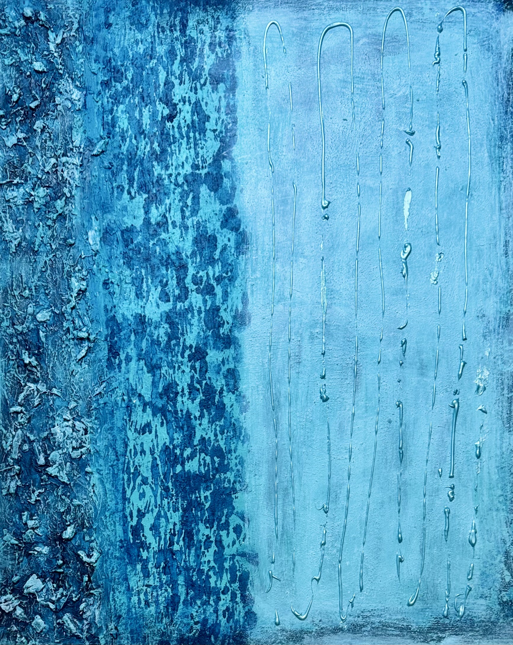 technika mieszana (akryl, masa szpachlowa, kawałki kory), płótno, 100 x 80 cm,