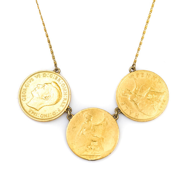 Naszyjnik zdobiony funtami angielskimi, Anglia, XX w.