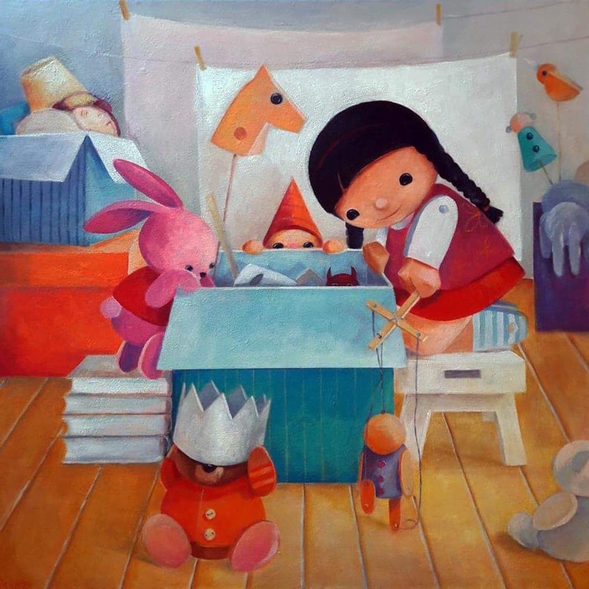 technika własna na płótnie, 100 x 100 cm