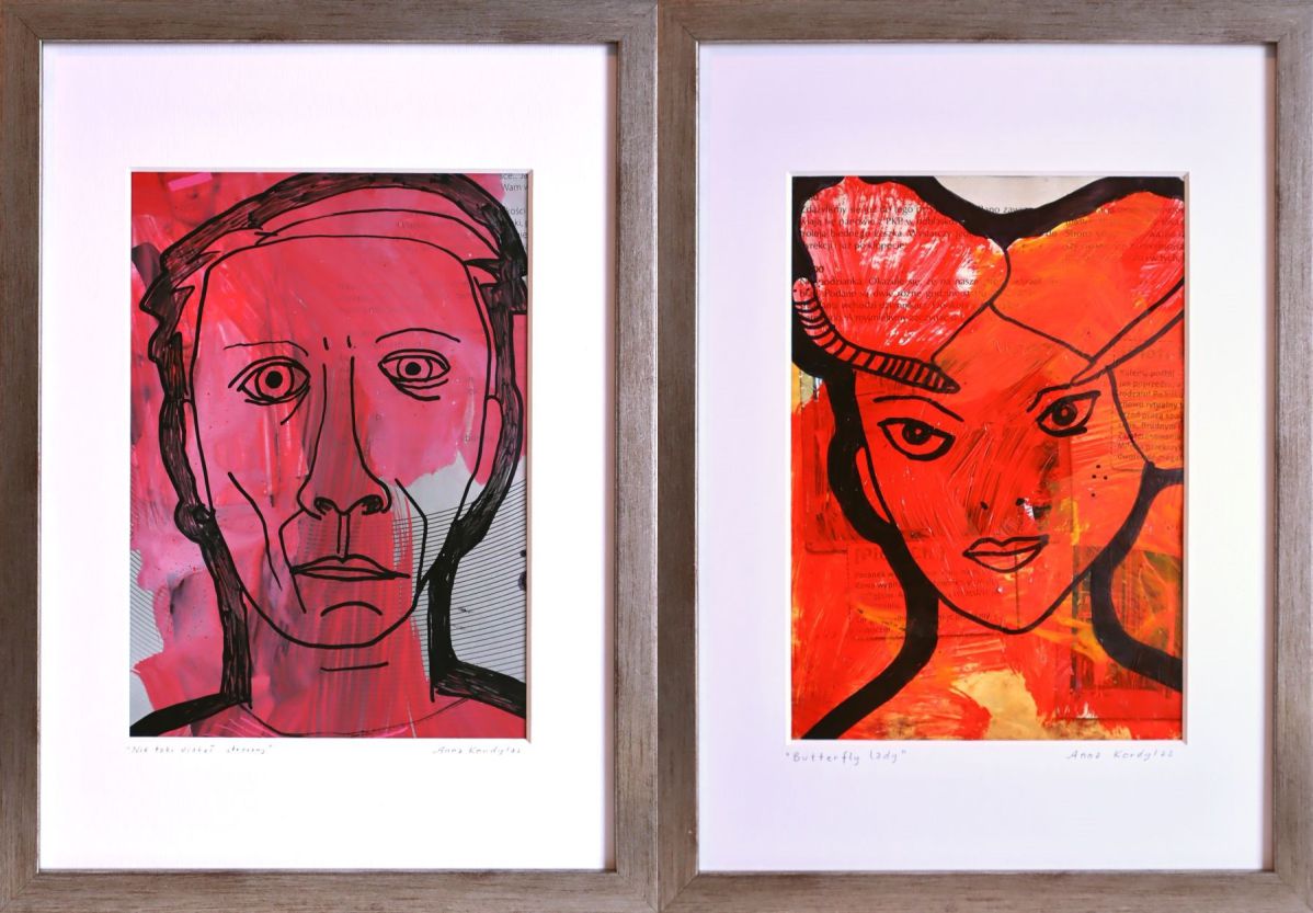 technika mieszana na papierze,dwie prace oprawione, 2 x 32 x 23 cmsygnowany p. d. róg: 'Anna Kordylas'sygnowany i opisany na odwrociu