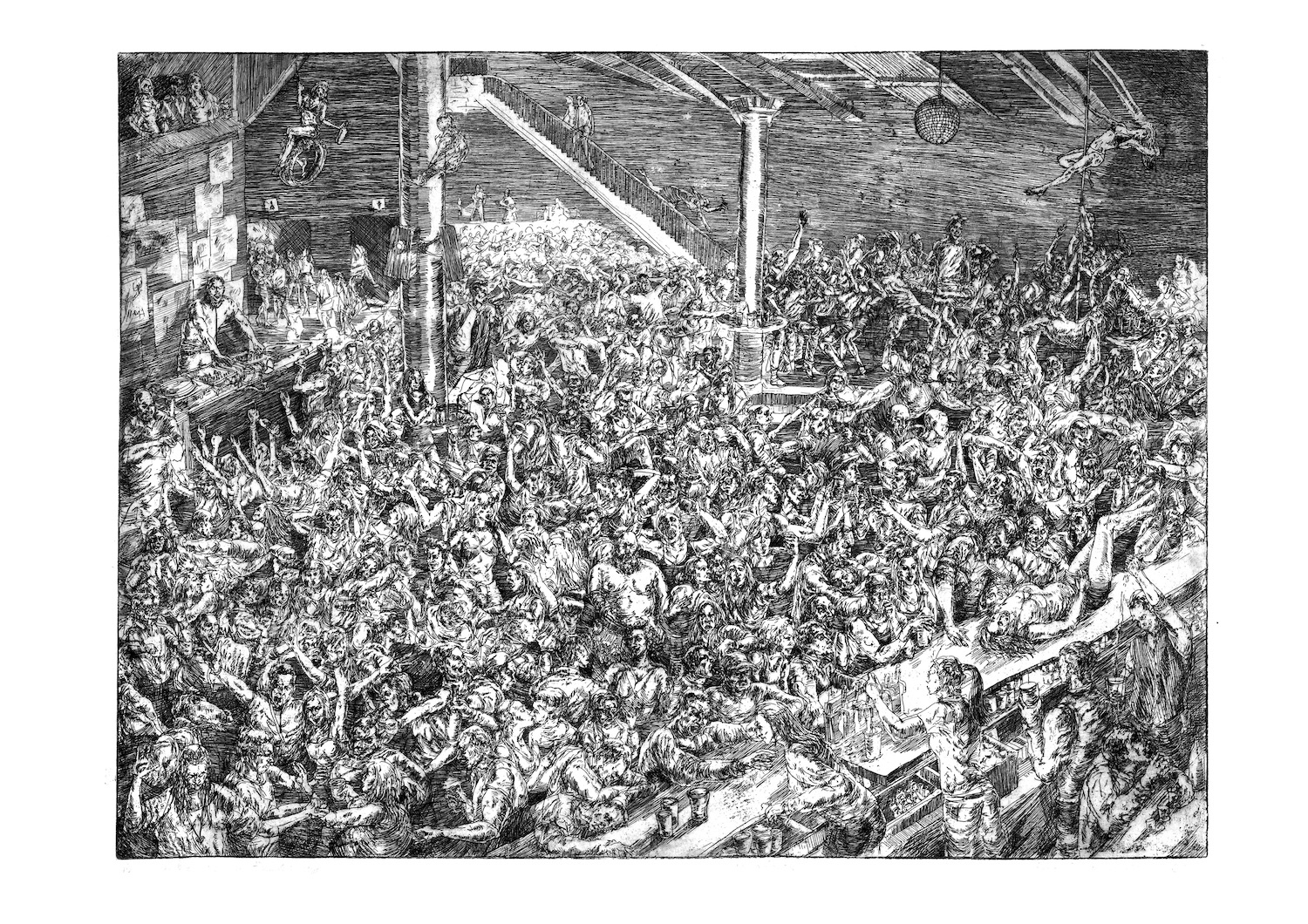 sygn.: Nie zgubię się w tłumie: bar 3/20 akwaforta Justyna Dziabaszewska 2016