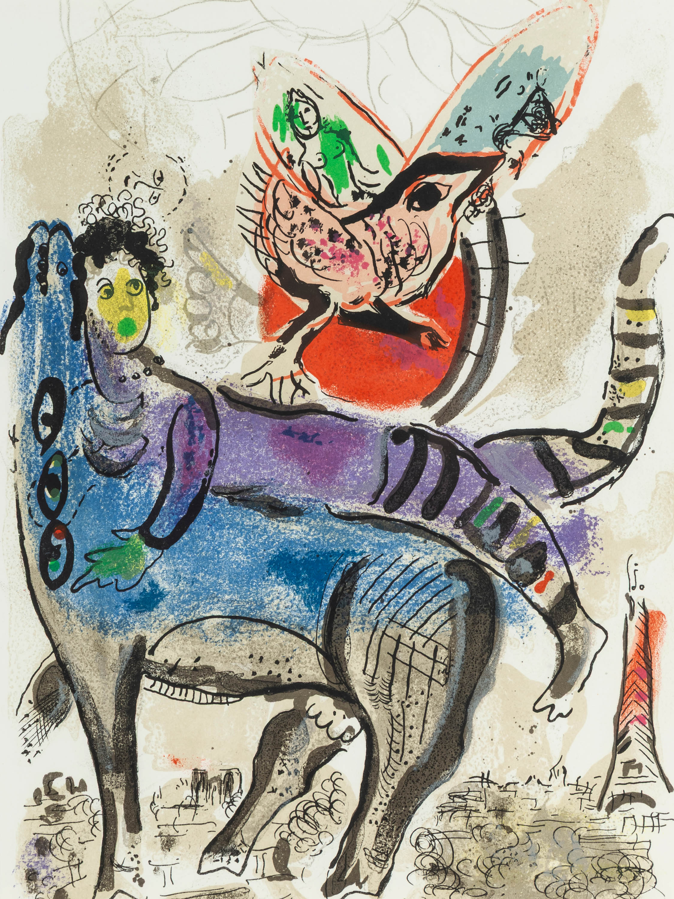 Kup abonament Wykup abonament, aby zobaczyć więcej informacjiNa rewersie napis: Marc Chagall Litographie originale en 18 couleurs pour XXe siecle no.29 (Mourlot, impr., Paris); wydawca litografii Atelier Mourlot.
