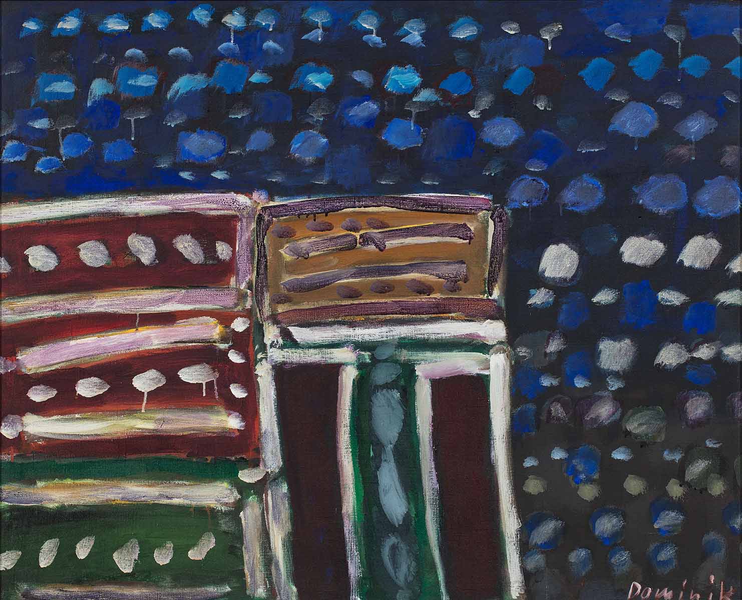 akryl, płótno97 x 120 cmsygn. p.d.: Dominik, sygn. i opisany na odwrociu: DOMINIK / 97 x 120 / Liquitex 1965 / "NIEBIESKI"
