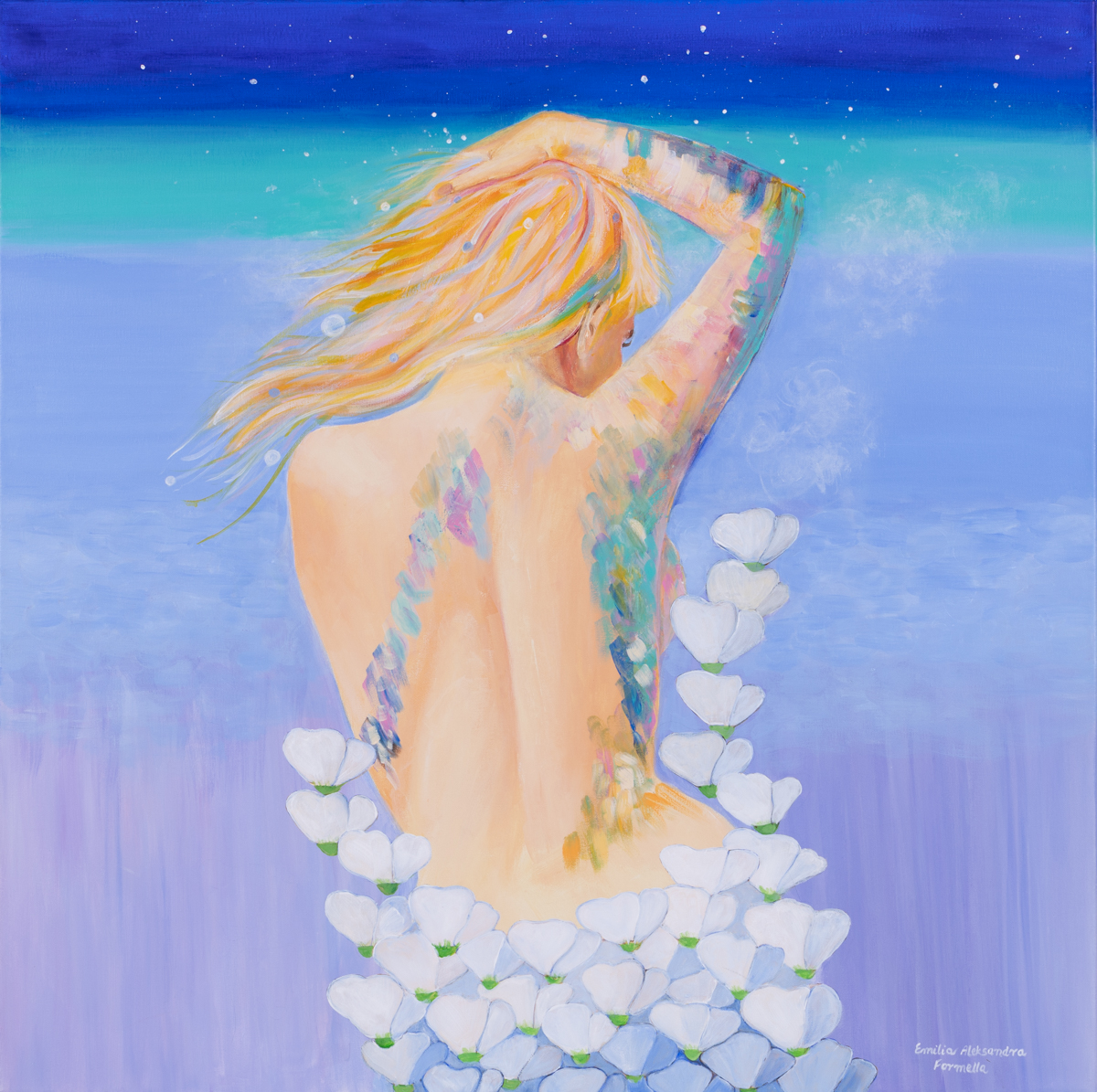 akryl, płótno, 80x80 cm,sygn. p.d.: Emilia Aleksandra Formella, opisany na odwrocie: "Nieboskłon mam nad głową" akryl 2022 Emilia Aleksandra Formella
