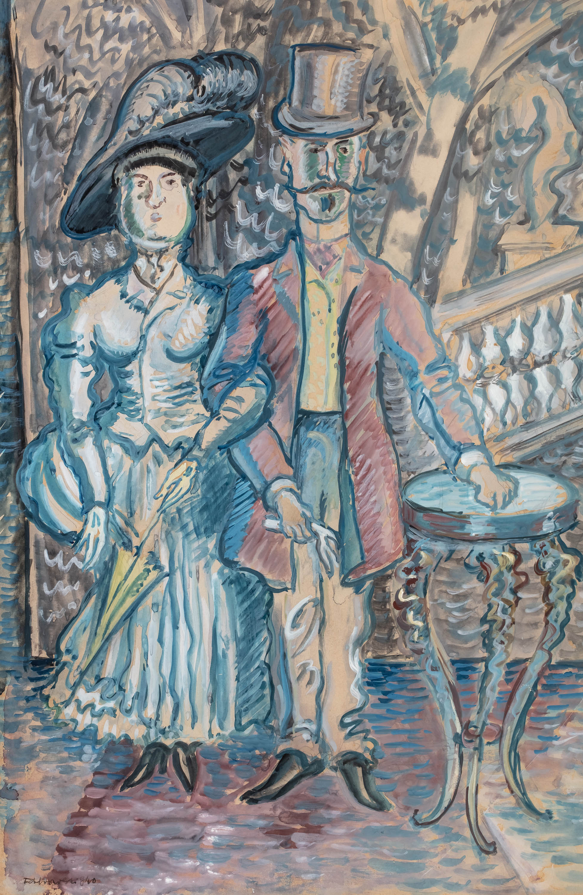 akwarela, gwasz, ołówek, papier, 60 × 39 cm w świetle passe-partoutsygn. i dat. l. d.: „TDobrowolski 940”na odwrocie szkic z przedstawieniem podobnej sceny z kobieta i mężczyzną