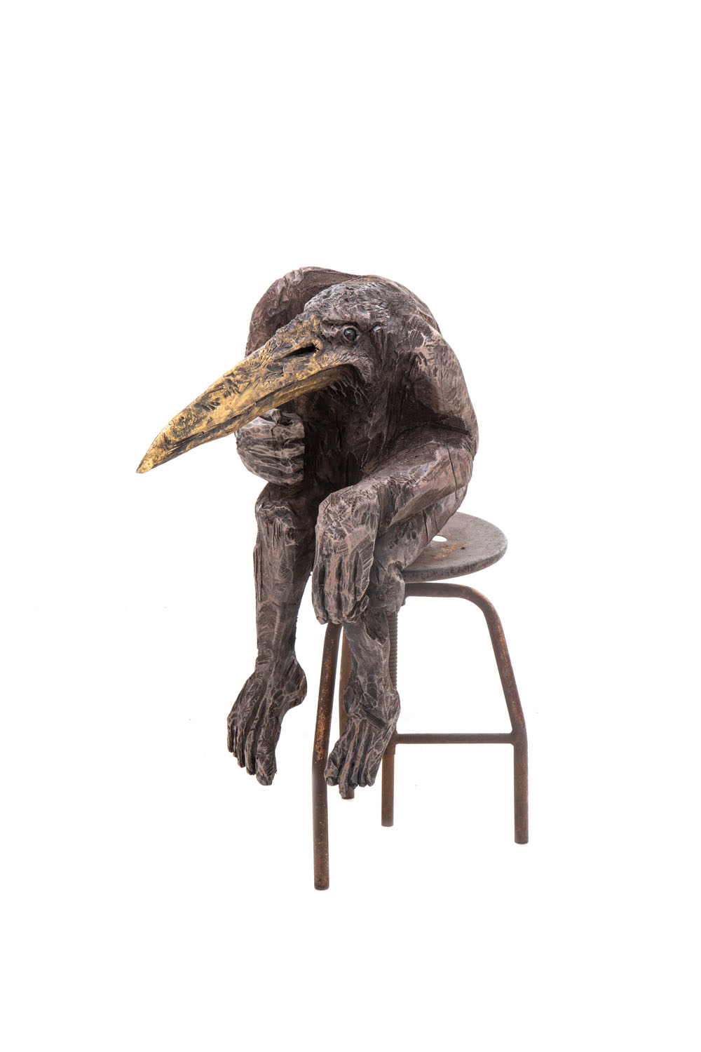 drewno, szlagmetal, 67 x 70 x 30 cm