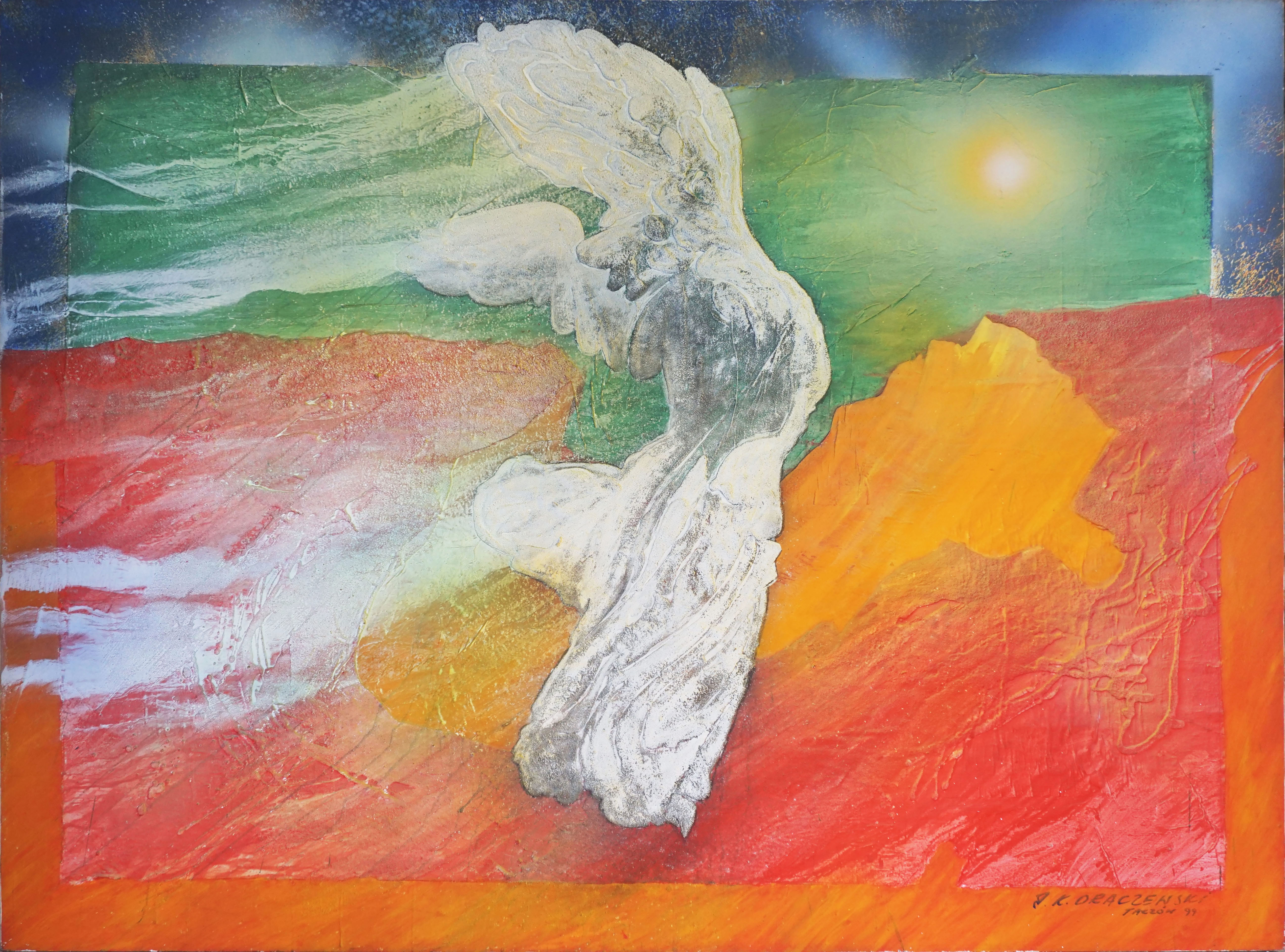 akryl, relief, technika własna, płótno180 x 250 cmsygn. p.d.: J. K. ORACZEWSKI | TACZÓW '94sygn. na odwrociu: NR KAT | 1092 | NIKE
