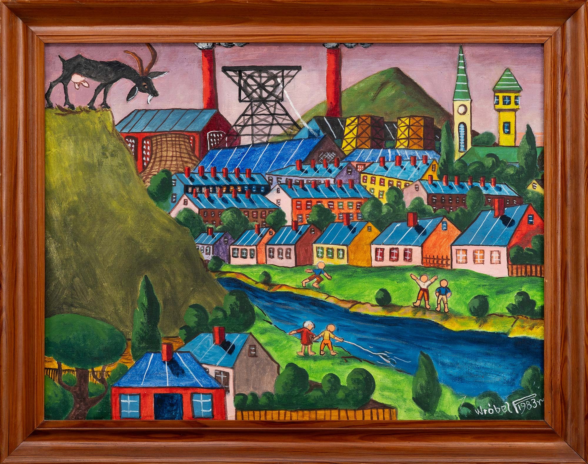 akryl, płótno; 51 x 67 cm;sygn. i dat. p. d.: Wróbel 1983ropisany na krośnie: NOC POŚLUBNO