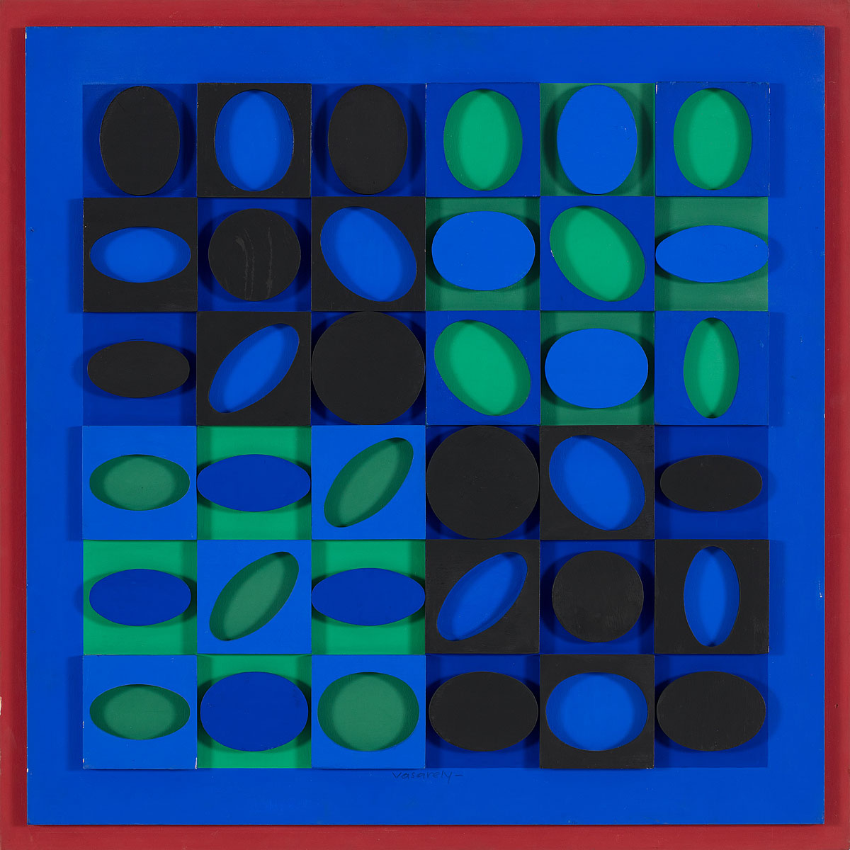 sygn. na odwrociu: BB-NOIR-VERT-BLEU 75 x 75 -1964-67 Vasarely
