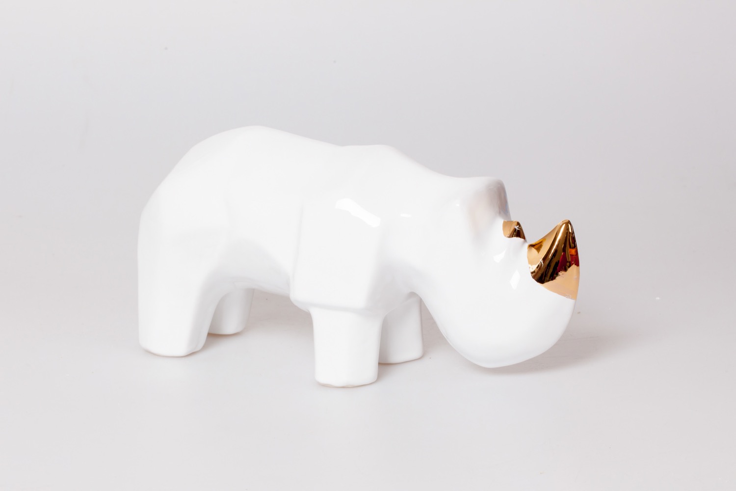 ceramika szkliwiona i złocona 24k złotem, ok. 25 x 15 x 10 cm,