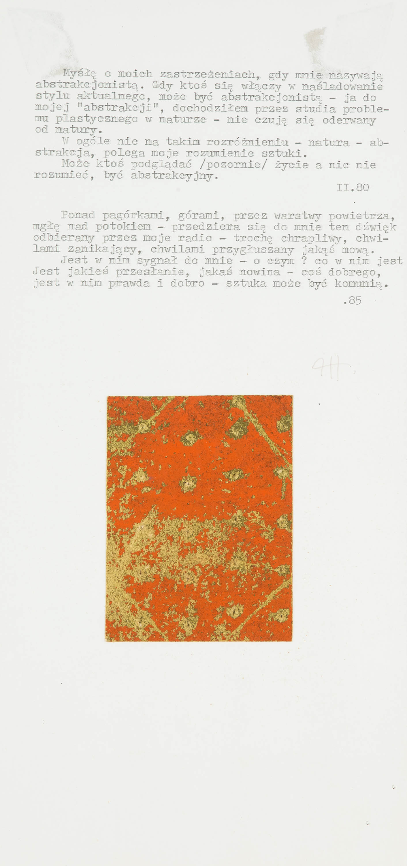 Notatka o sztuce, 1985