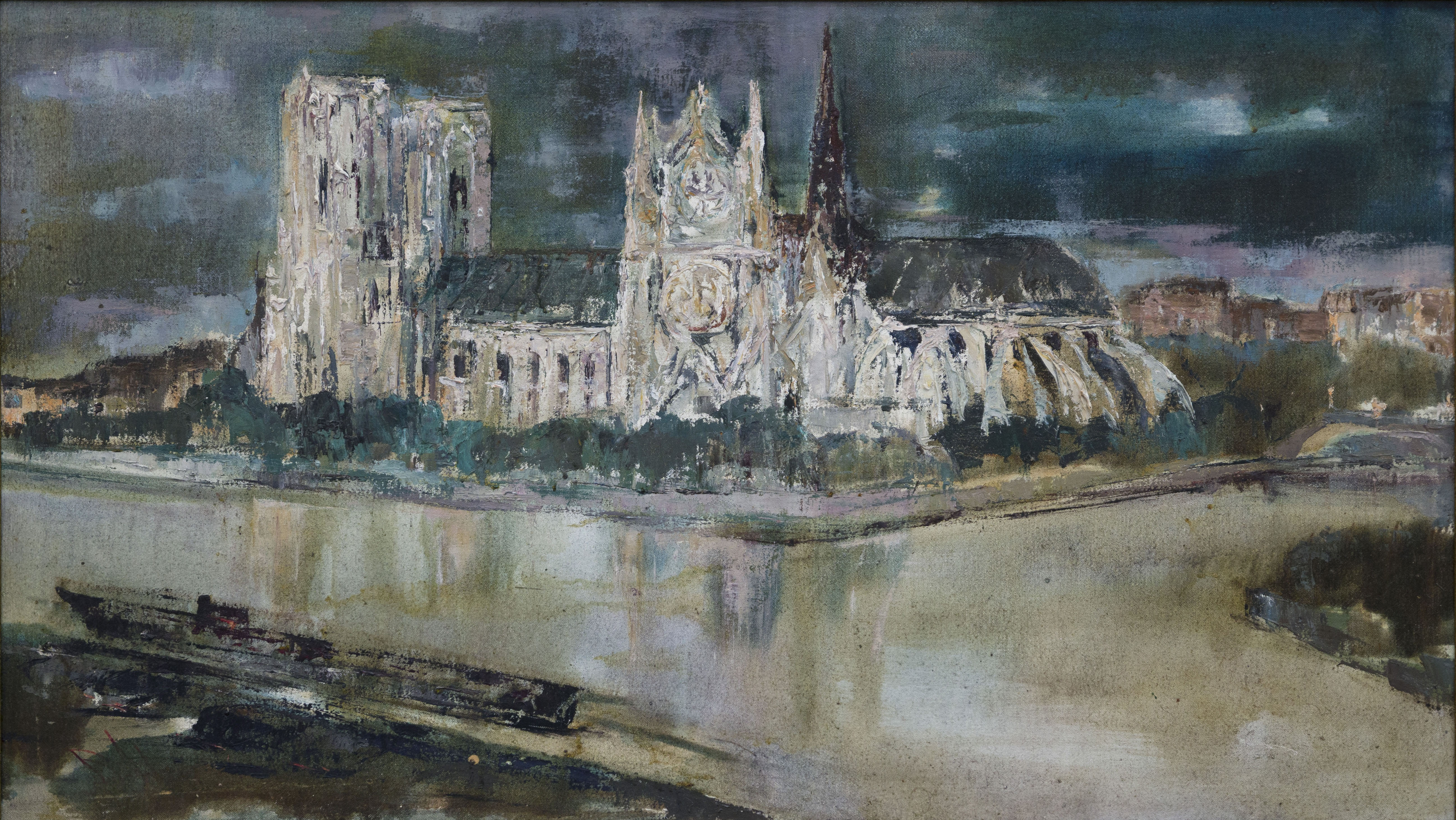 Na odwrociu: Bronisława Wilimowska | "Notre-Dame I" | Olej 1971. wym. 70 x 120 | słabo czytelna pieczątka Muzeum Narodowego w Warszawie z podpisem | naklejka drukowana w języku angielskim | naklejka z napisem: DT 485/76 | ÉVBBB | Wilimowska