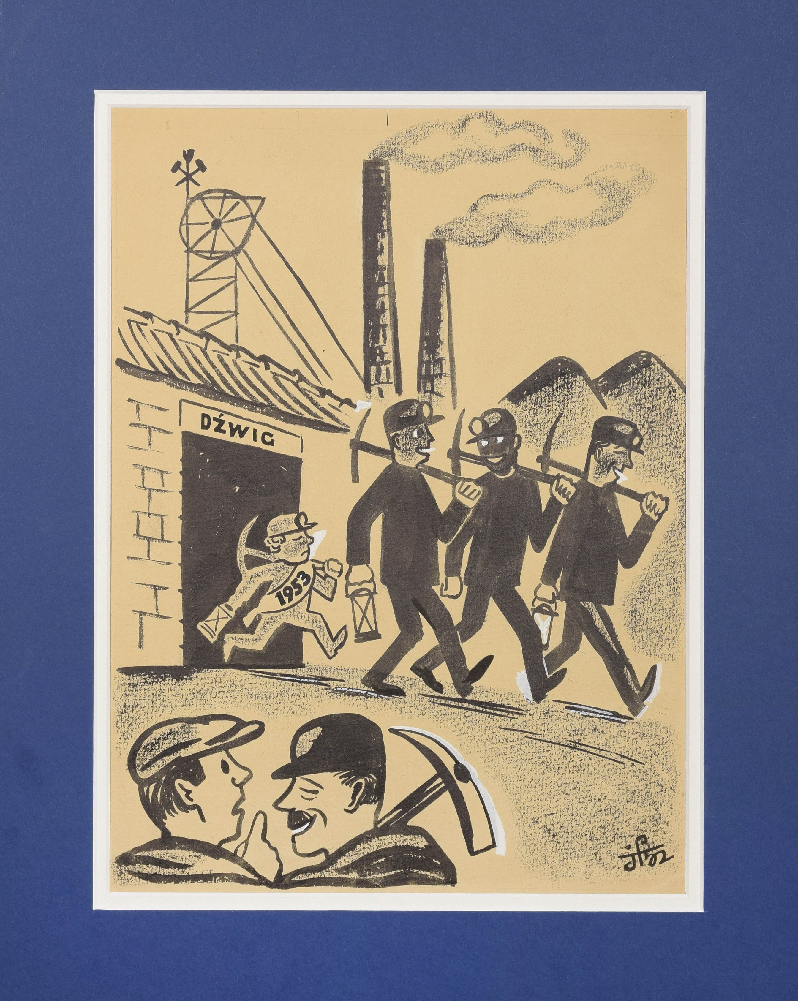 tusz, gwasz, pastel; w świetle passe-partout: 34 x 25 cm;sygn. p. d.: JF52; z tyłu opis do scenkiProj. ilustracji do "Szpilek" nr 57.
