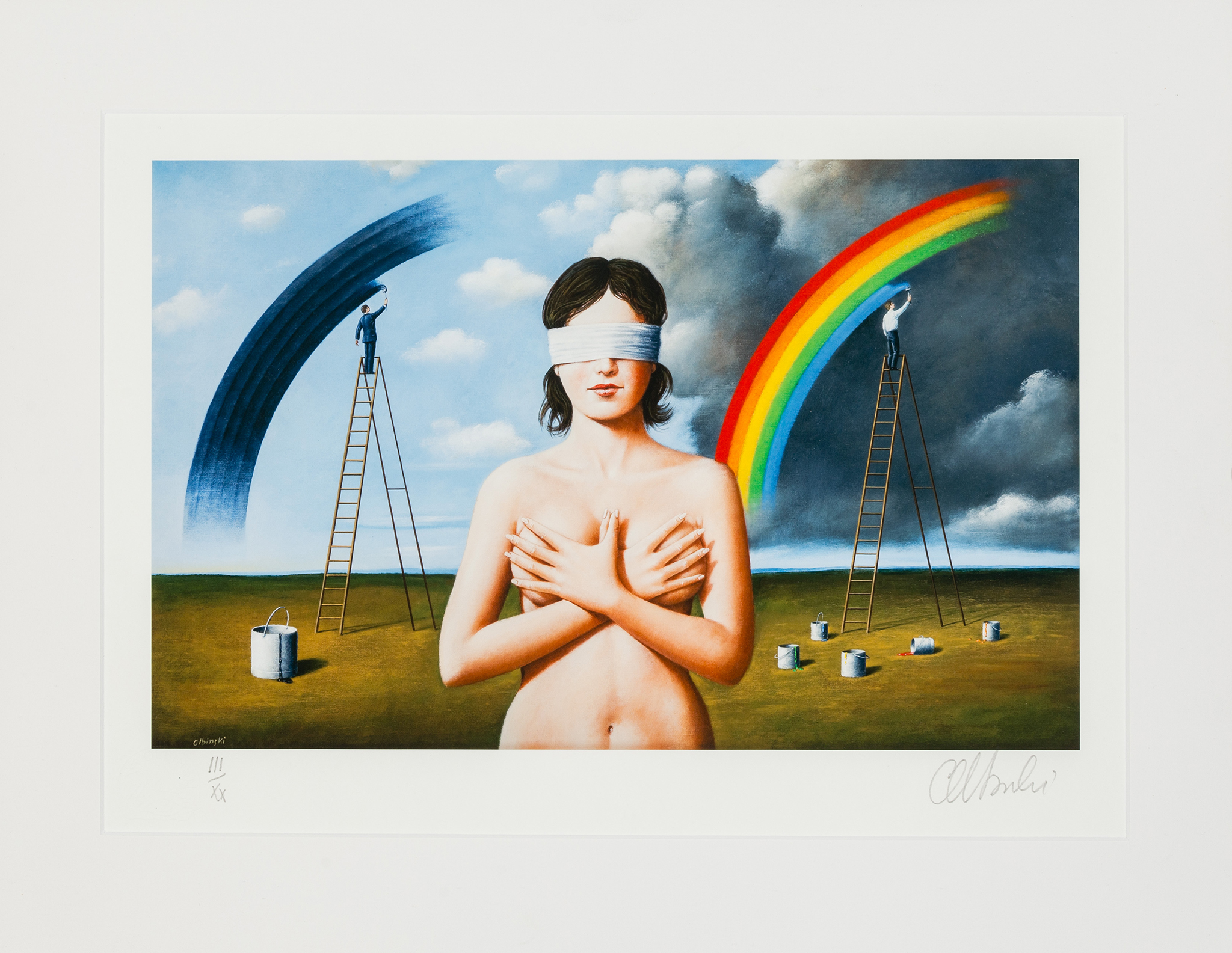 inkografia na papierze, 23,5 x 36,5 cm,sygnowany i numerowany ołówkiem poniżej kompozycji: "III/XX Olbiński".