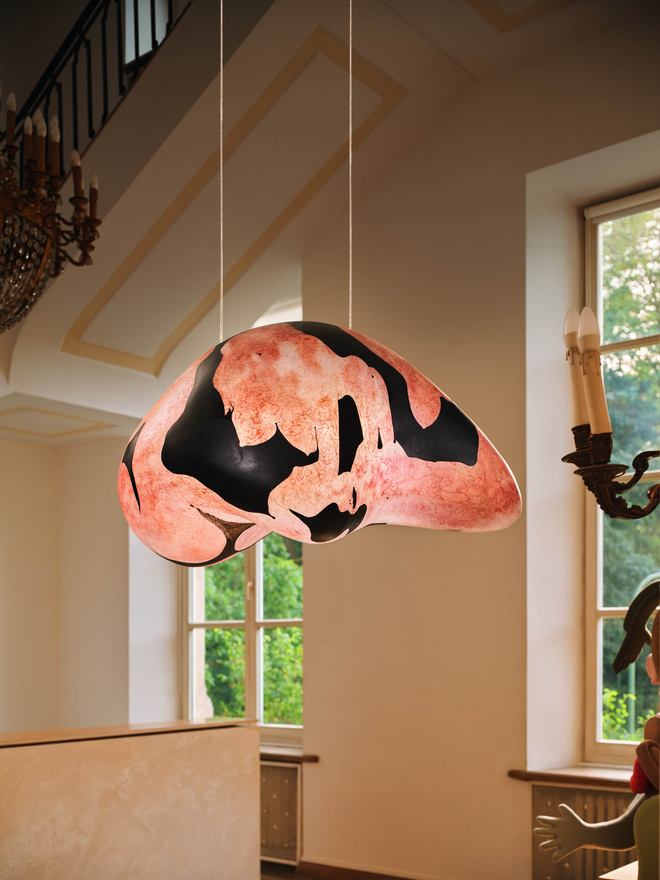 To kształt, który kojarzy się z cielesnością. Którego chce się dotykać, obracać, głaskać. Powłoka lampy - w dotyku aksamitna, delikatna, organiczna – jak skóra. Pokryta przedziwnymi słojami.