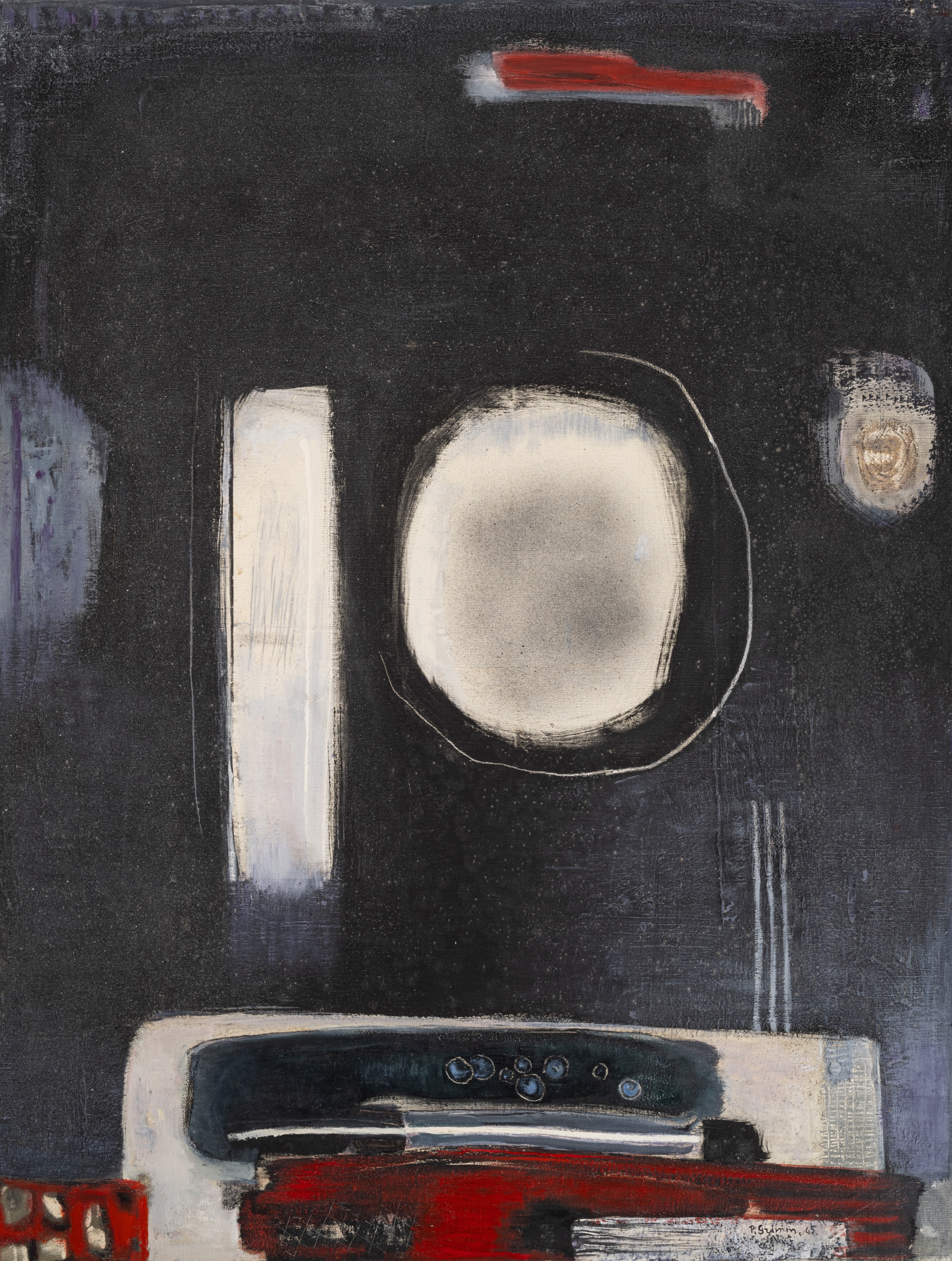 na odwrociu sygn.: „P.Grimm Reflets”; adres warsztatu „56 Bd Arago Paris 13”; nr inw. „50”; etykieta z napisem „zdjęcie 202” i datą „1965”