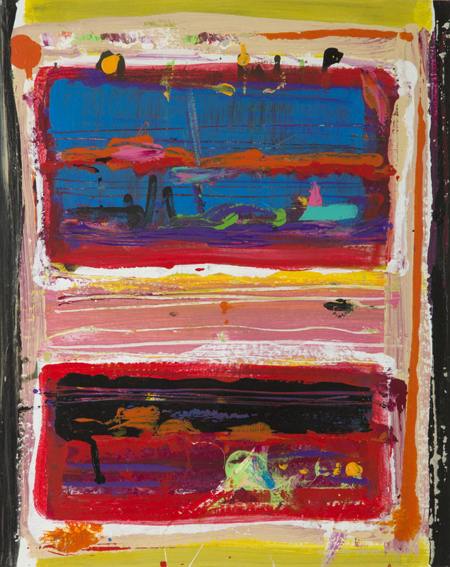 akryl/papier, 48,5 x 39 cm (w świetle passe-partout)na odwrociu napis: 'Roman Nyga | "Empfindung und Einsicht" II | 1999 | Acryl auf Karton | 50 x 40 cm'