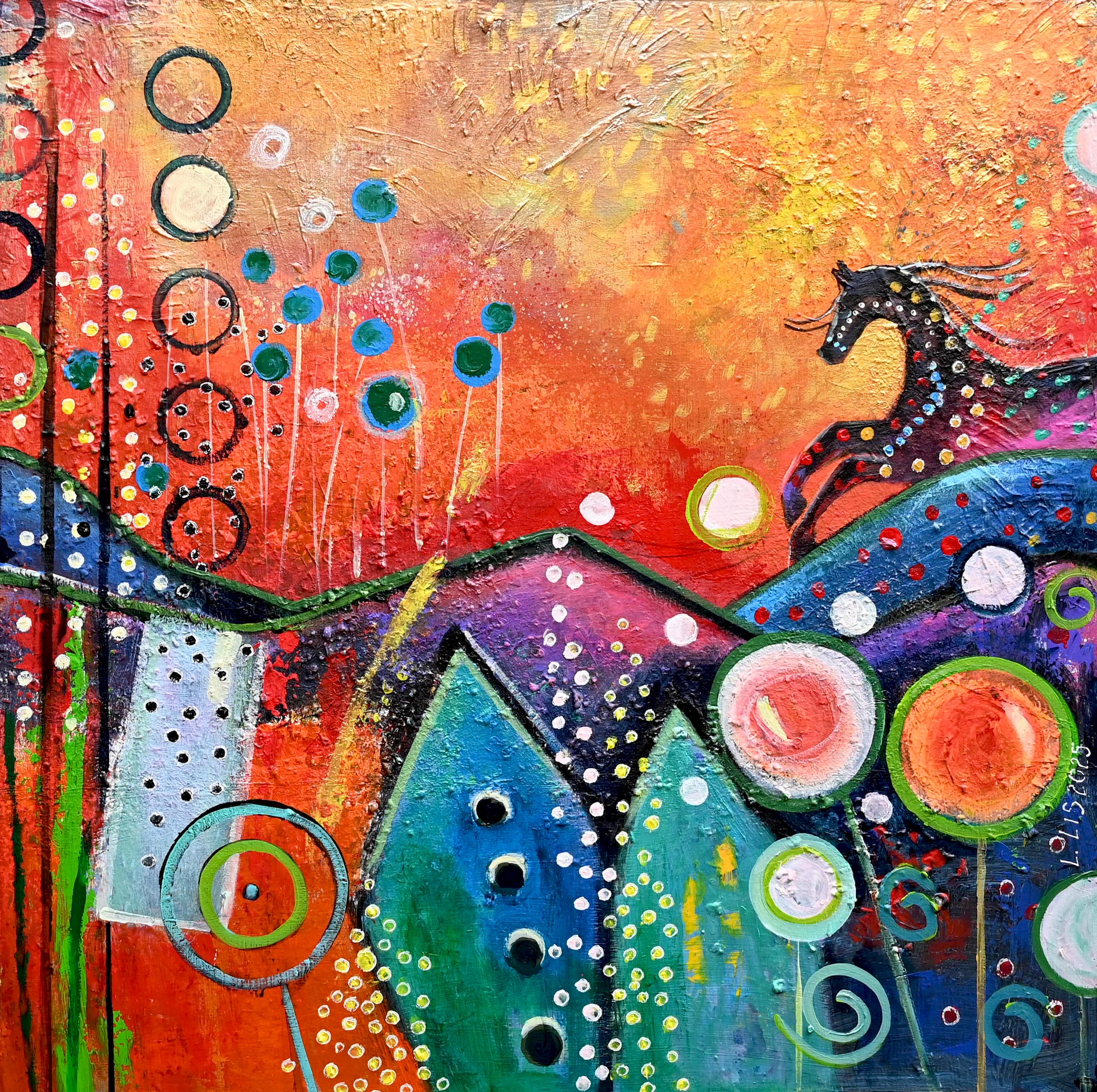 akryl, szlagmetal, płótno, 100 x 100 cm