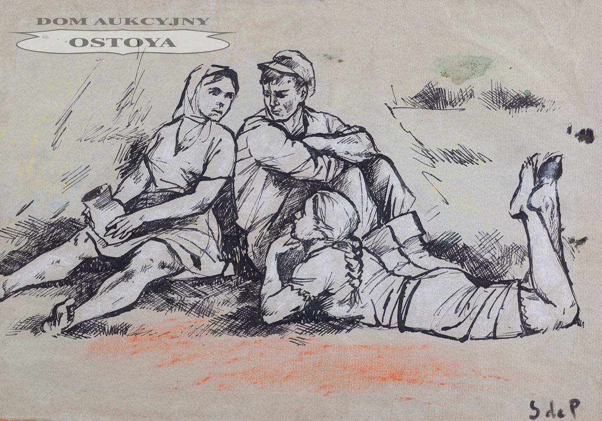 Tusz, piórko, kredka; 20,5 x 29 cm (w świetle p-p)