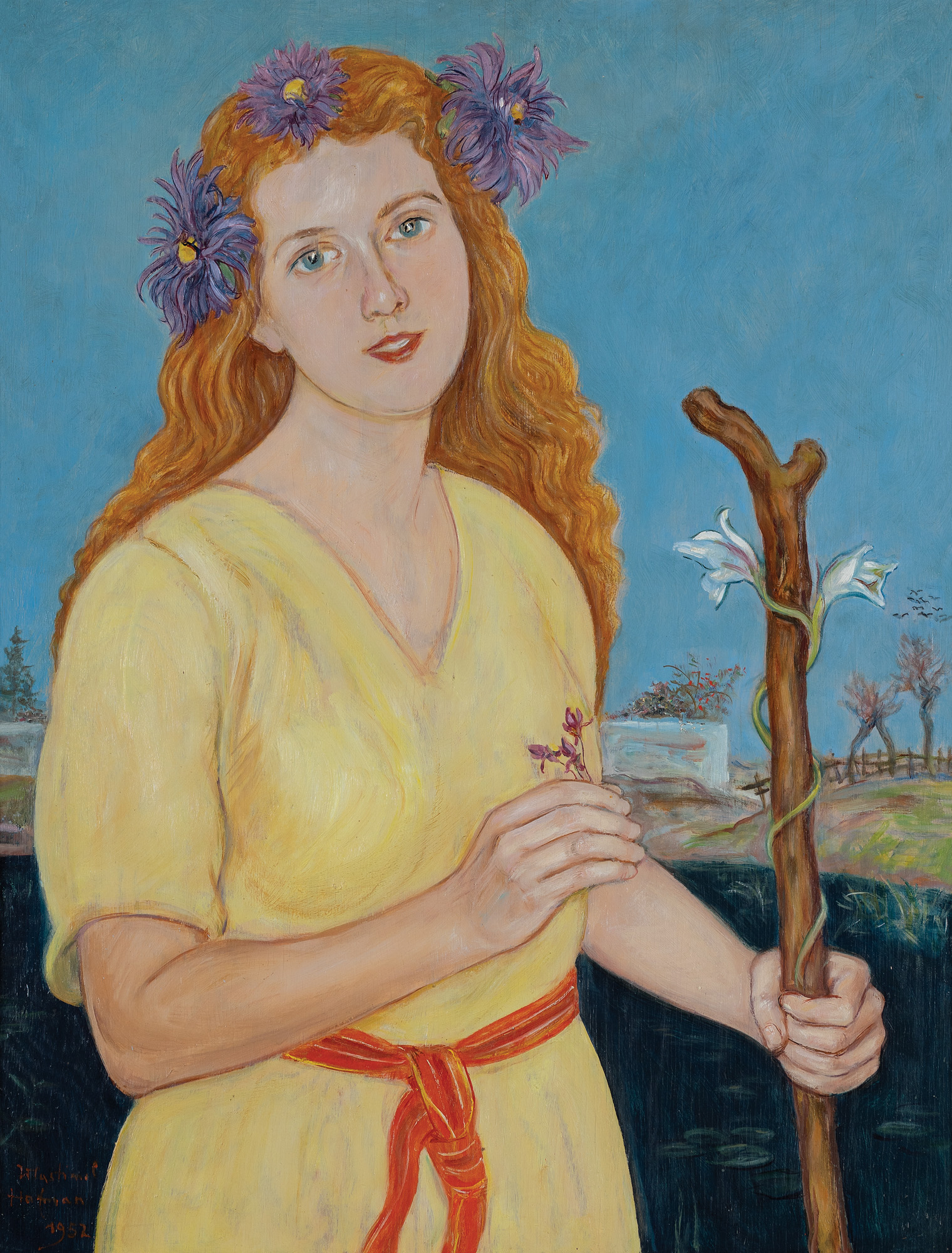 Wlastimil Hofman / Vlastimil Hofmann (Praga 1881 - Szklarska Poręba 1970) studiował w krakowskiej Szkole Sztuk Pięknych - początkowo pod kierunkiem Floriana Cynka, później także u Jana Stanisławskiego, Leona Wyczółkowskiego i Jacka Malczewskiego. W latach 1899-1902 uczył się jeszcze u Jeana Léona Gérôme’a w paryskiej École des Beaux-Arts. W czasie I wojny światowej przebywał w Pradze i w Paryżu; od 1920 stale mieszkał w Krakowie. Dużo wystawiał; należał do wielu stowarzyszeń twórczych - był współzałożycielem „Grupy Pięciu” (1905) i „Grupy Zero” (1908), członkiem Związku Artystów Czeskich „Manes”, a od 1911 członkiem Tow. Artystów Polskich „Sztuka”. W czasie II wojny światowej poprzez ZSRR i Turcję przedostał się do Jerozolimy, skąd w roku 1946 wrócił do Krakowa. Od roku 1947 stale mieszkał w Szklarskiej Porębie. Hofman malował przede wszystkim fantastyczno-symboliczne kompozycje o motywach ludowych oraz sceny rodzajowe, portrety i pejzaże. Jego obrazy mimo bliskich analogii i powiązań ze sztuką Malczewskiego odznaczają się zawsze indywidualnym charakterem, stylem i nastrojem.