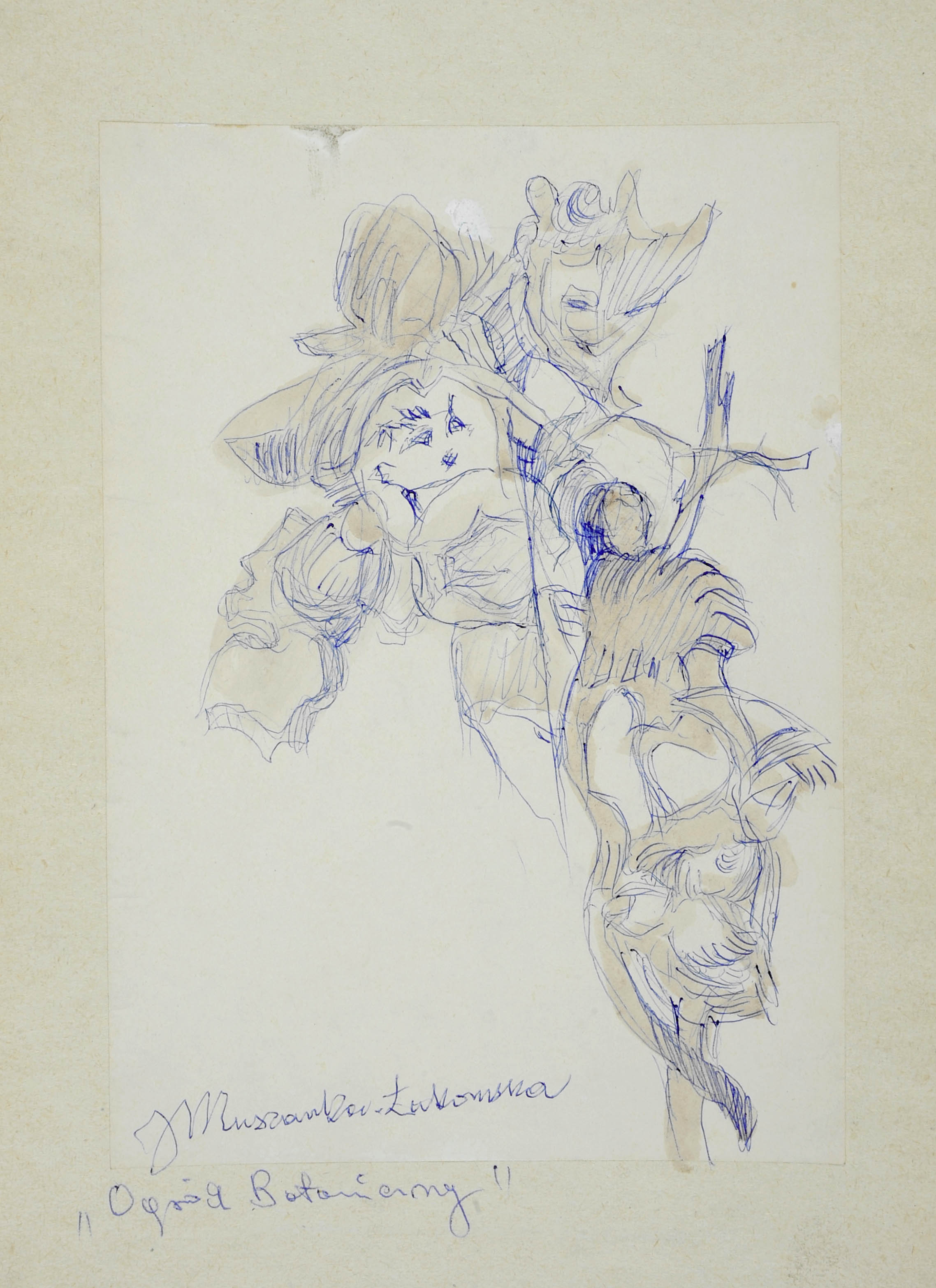 sygnowany u dołu z lewej JMuszanka - Łakomska; poniżej obrazu z lewej napis autorski długopisem „Ogród Botaniczny” .