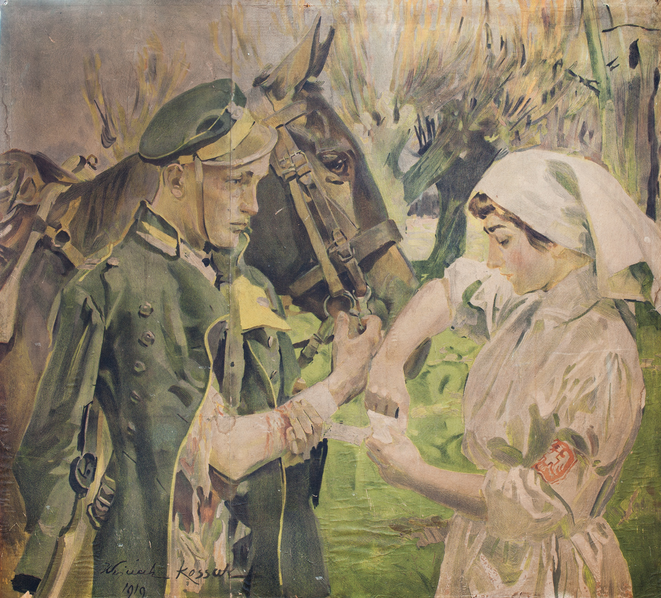 wymiary: 1000mm - 1100mmRotograwiura, naklejona na tekturę, sygn.i dat. l.d.: "Wojciech Kossak, 1919".