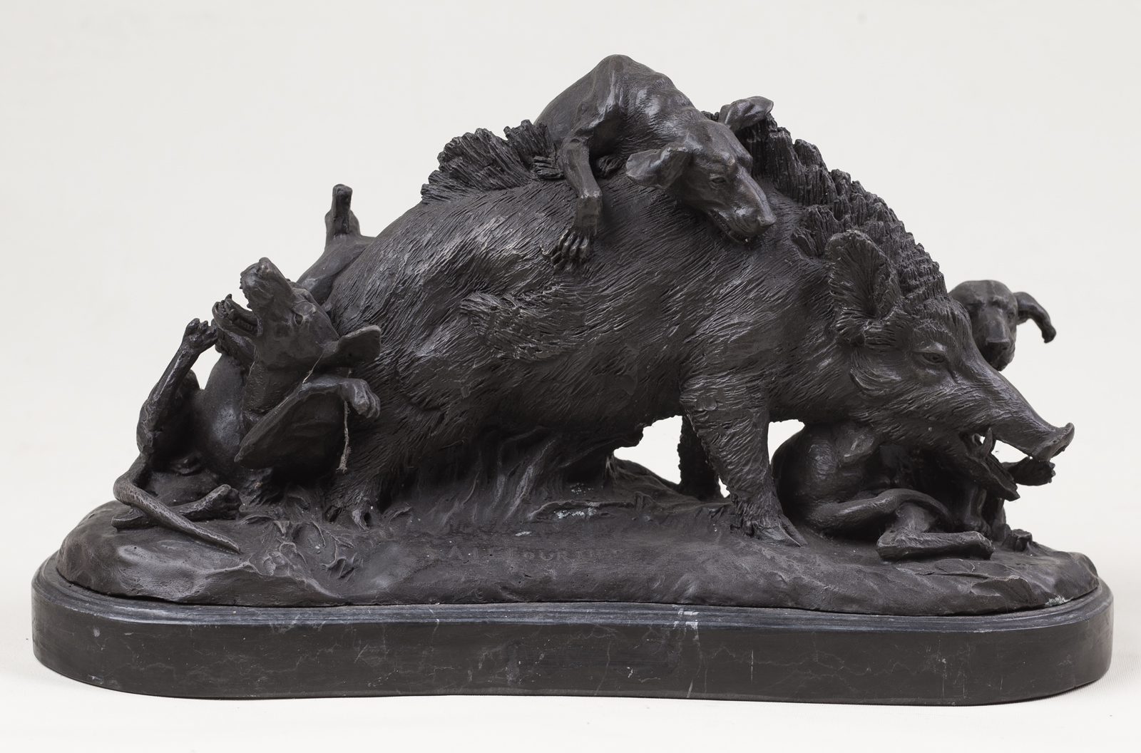 wymiary: 230mm - 390mmBrąz patynowany na podstawie z marmuru, Sygnowany u dołu: "A.Lecourtier". Stan zachowania bardzo dobry.
