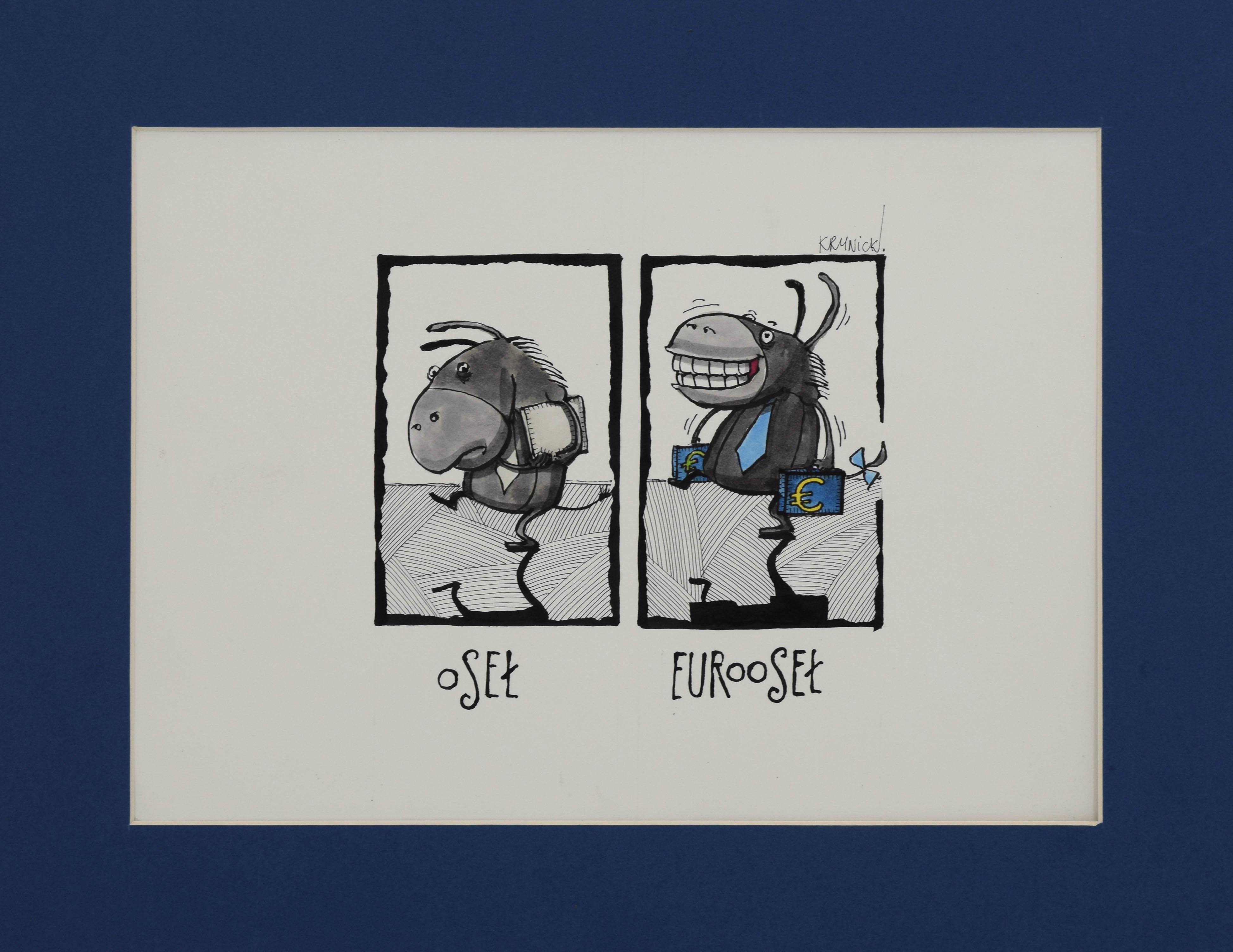 piórko, tusz, akwarela, papier; 21 x 28 cm;