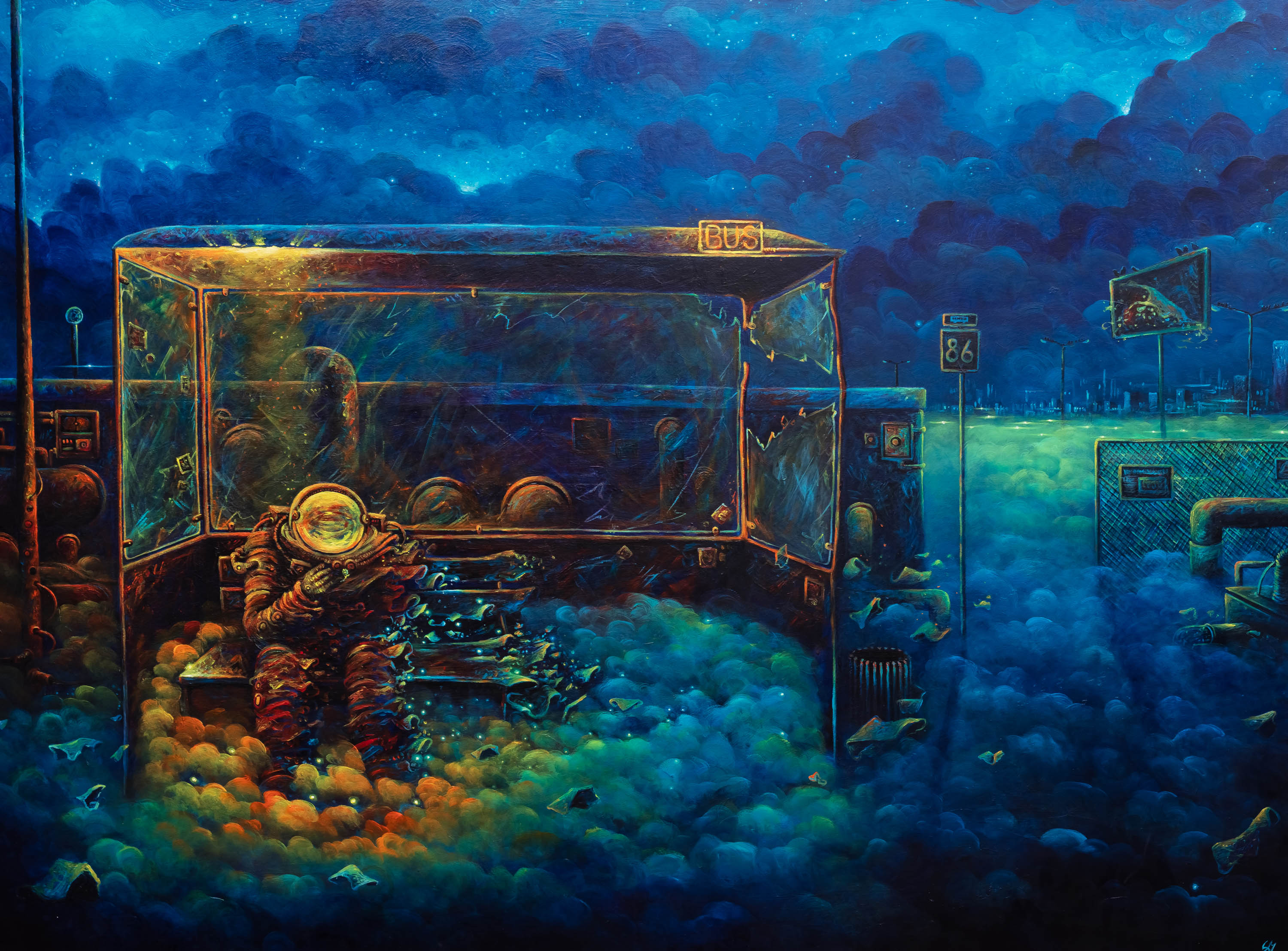 sygnowany p.d.: 'SM' oraz opisany na odwrocie: 'SEBASTIAN MOŃ | "OSTATNIE DNI NA ZIEMI"| 2022'