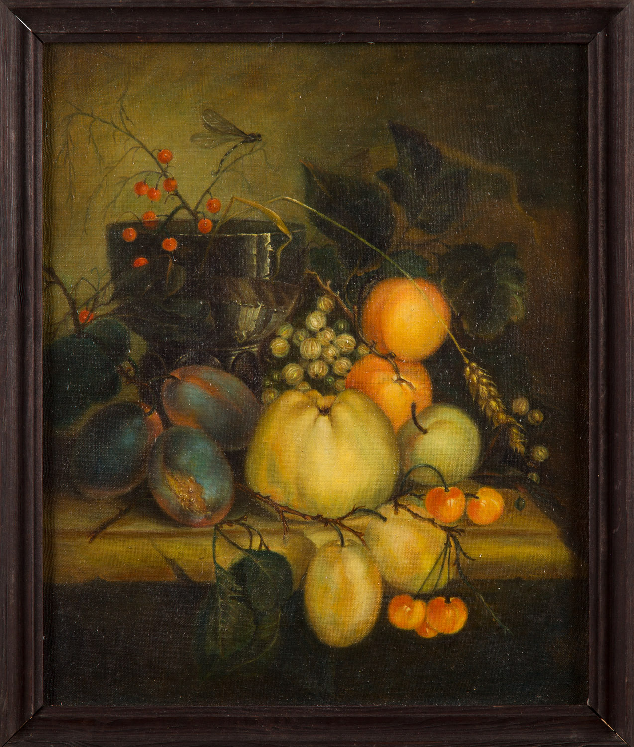 olej, płótno, 35 x 28,5 cm;na odwrocie: nalepka z opisem pracy: "OWOCE" w/g JAN DAVIDSZ DE HEEM | MAL. HALINA CHOLEWA