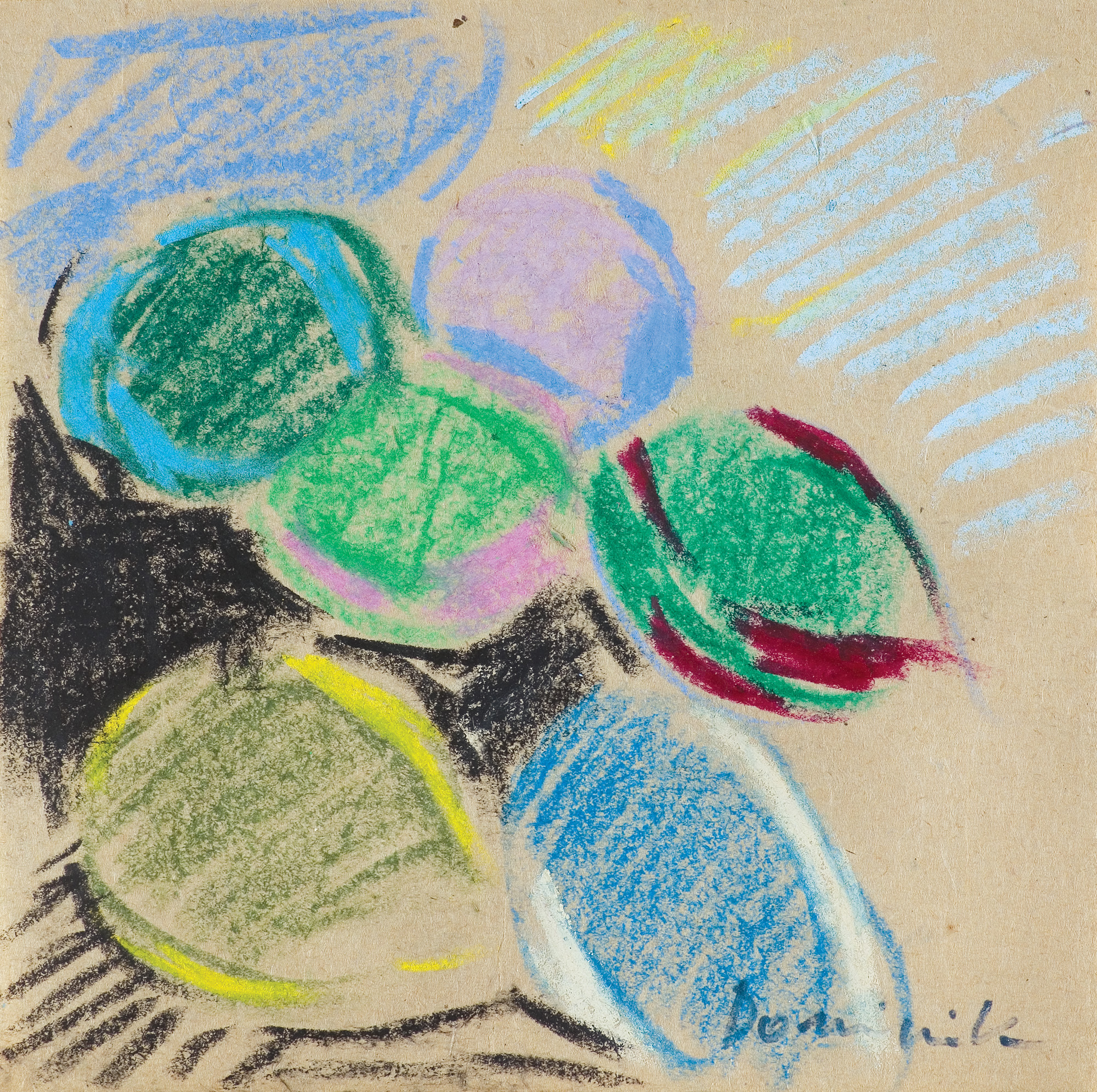 pastel, papier beżowy naklejony na karton (na odwr. kartonu druk katalogu wystawy indywidualnej artysty, bez miejsca i daty, po 1972)