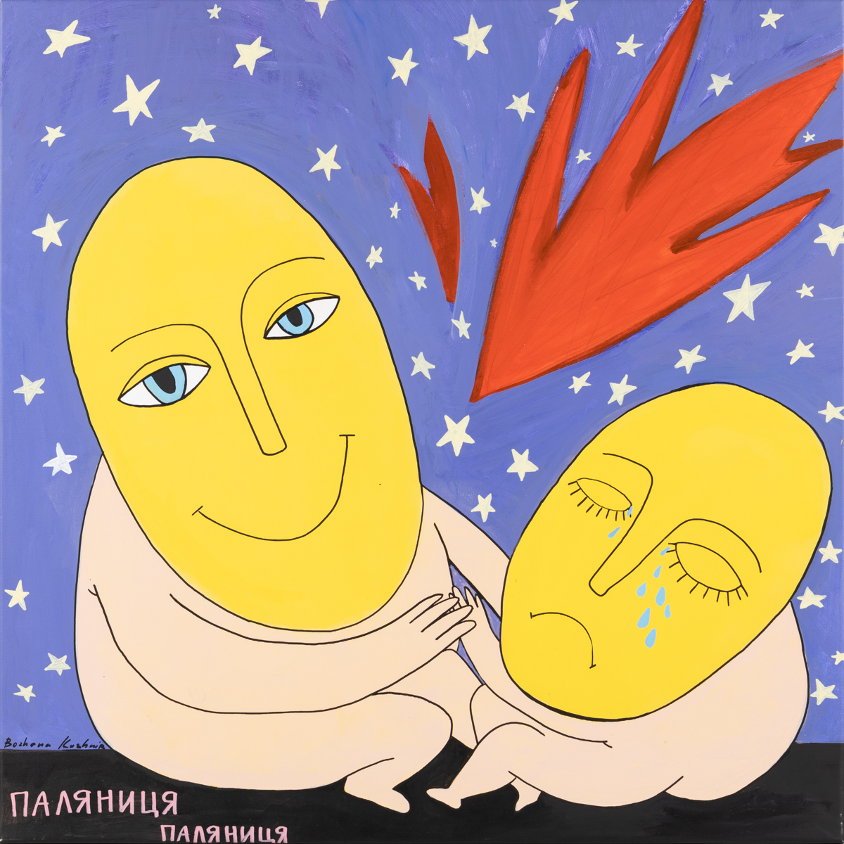sygn. l.d.: Bozhena Kushnir, opisany na odwrocie: Bozhena Kushnir "Поляниця" ("Placek") Ukraine 2022 100x100 cm