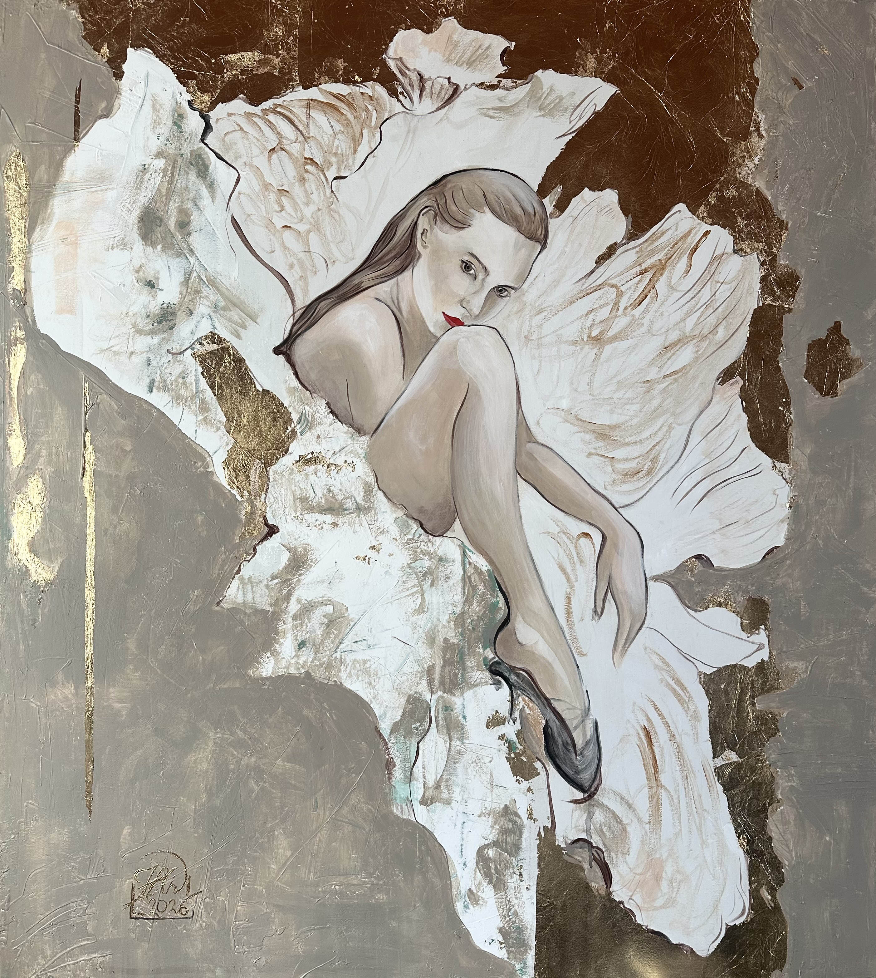 technika mieszana (akryl, szlagmetal), płótno, 90 x 100 cm,