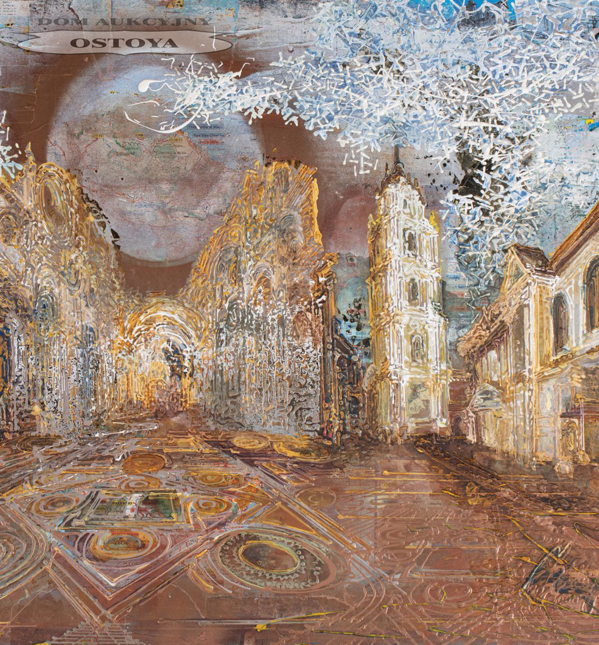 Kolaż, akryl, pilśnia; 60 x 56 cm