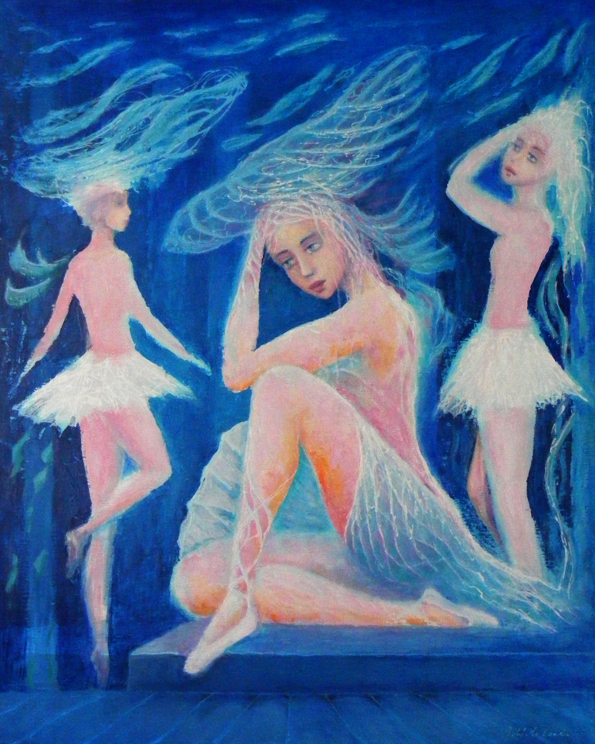 Ostatnio maluje obrazy, w których „pojawiają się” bajkowe postaci i sytuacje zaczerpnięte