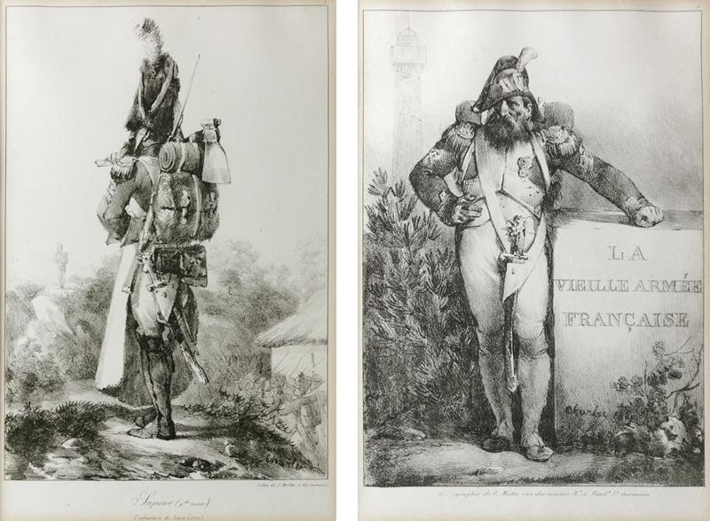sygn. na kamieniu: Charles; praca opisana u dołu: Litho. de C. Motte r. des marais / Sapeur (g. de tenue) / (infanterie de ligne (1809).