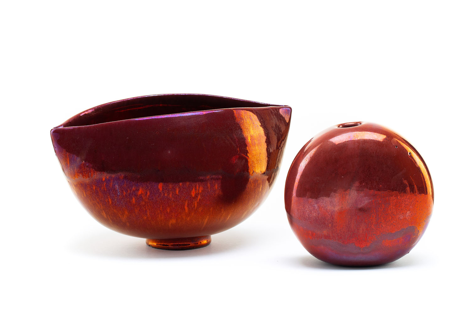 ceramika szkliwiona, w skład zestawu wchodzą: misa (11,5 x 22 x 15 cm), wazonik: (12 x 13 x 7 cm)oba naczynia sygnowane na spodzie monogramem wiązanym: 'KC'