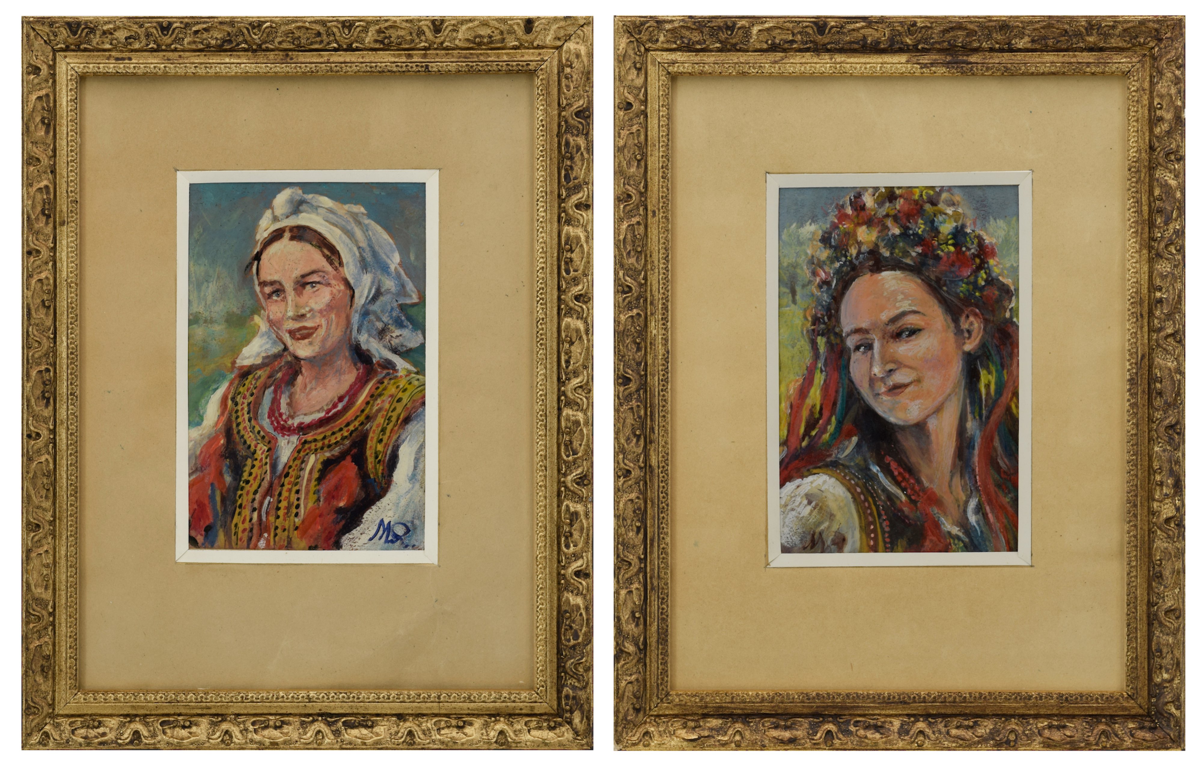 1. Krakowianka z wiankiemolej, tektura, 14 x 9 cm (w świetle oprawy);sygn. l. d.: MR;2. Krakowianka w chuścieolej, tektura, 14 x 9 cm (w świetle oprawy);sygn. p. d.: MR.