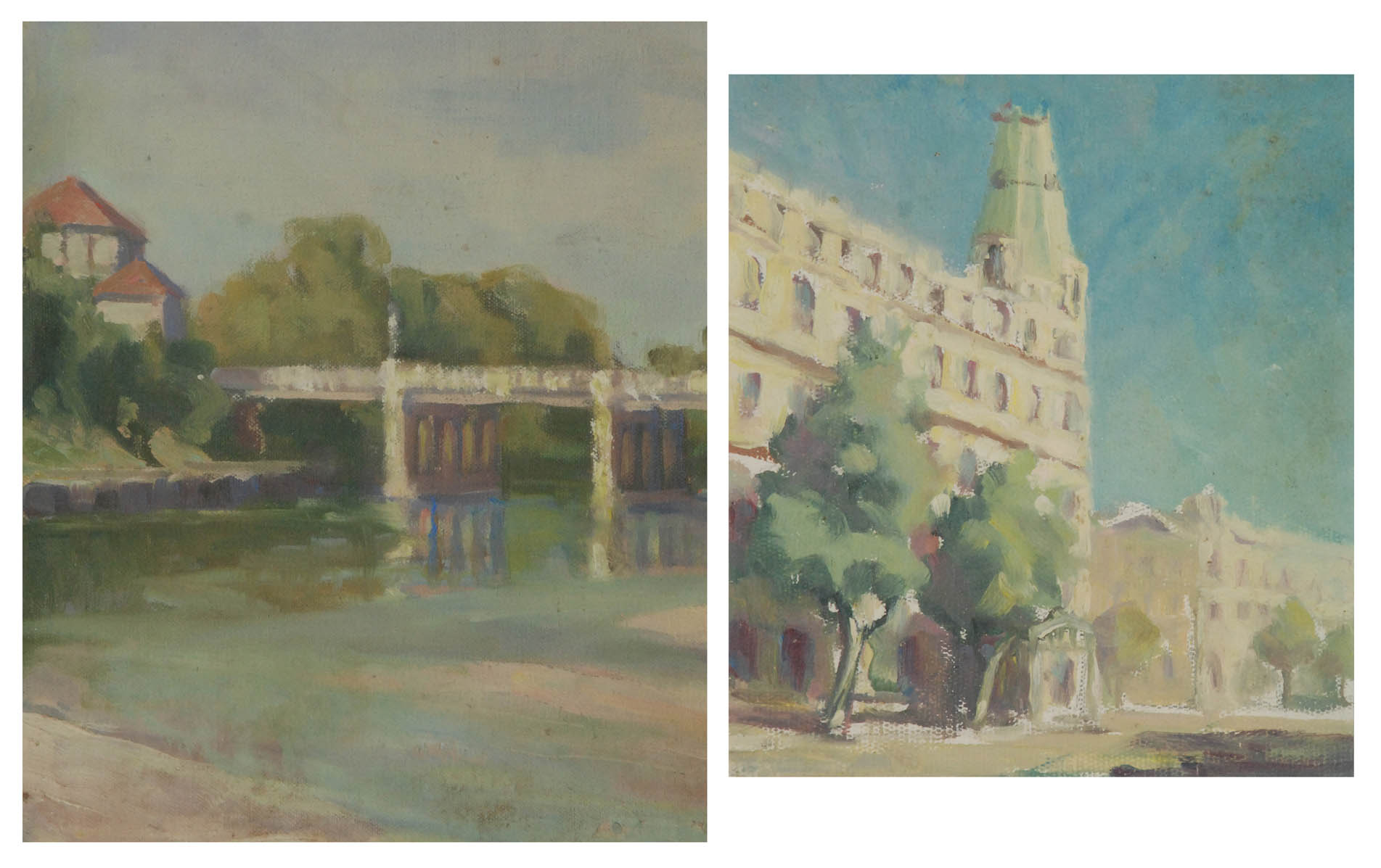 Hotel Windsor: olej, tektura?; 17 x 15 cm (w świetle oprawy).Most na rzece Yarra: olej, tektura?; 22,5 x 19 cm (w świetle oprawy).