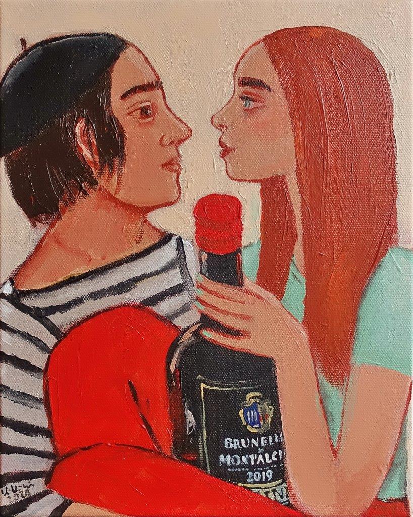 "Para z butelką wina"