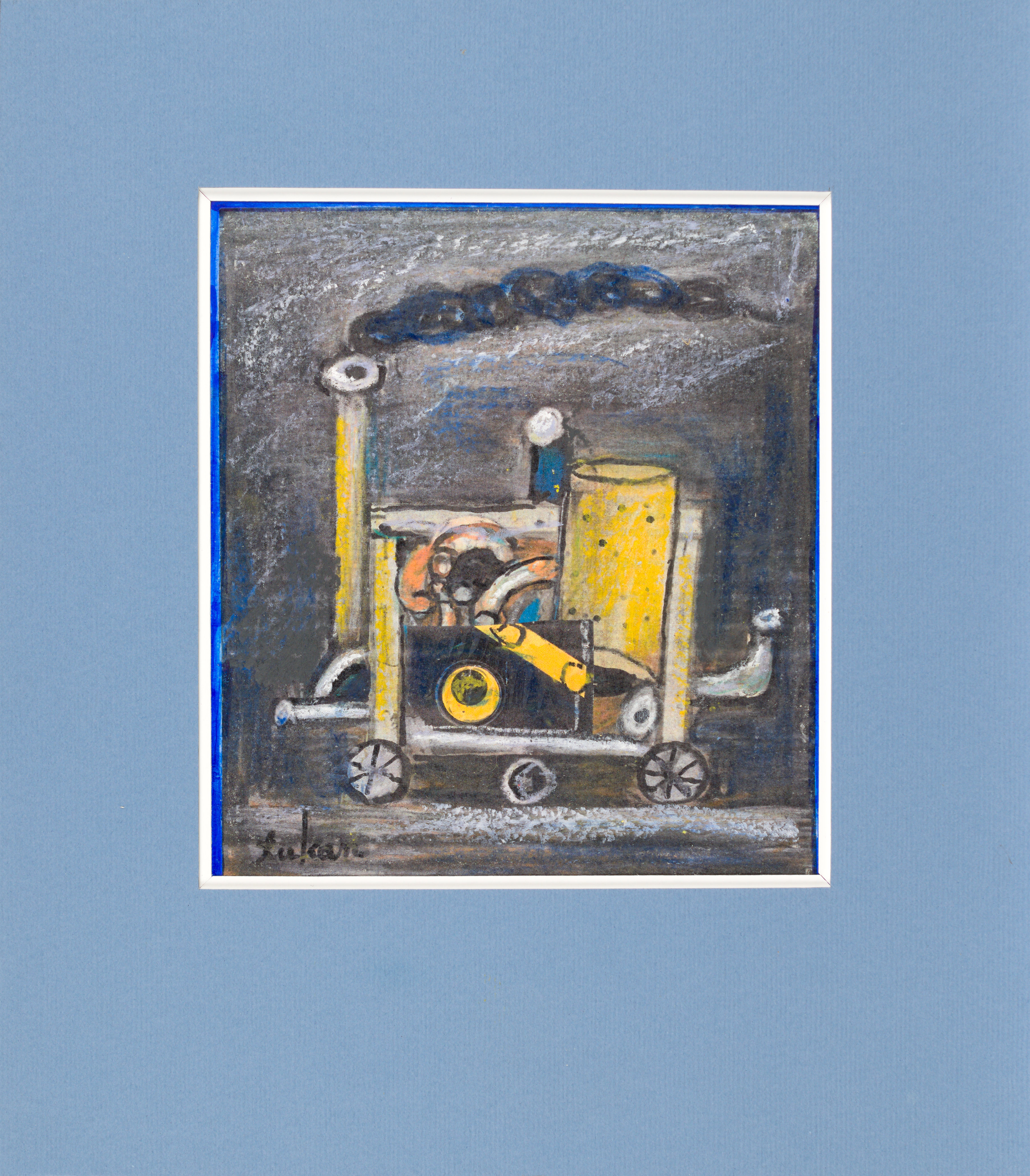 technika mieszana: akryl, pastel olejny, papier; 15,5 x 14 cm (w św. passe-partout);sygn. l. d.: tukan.